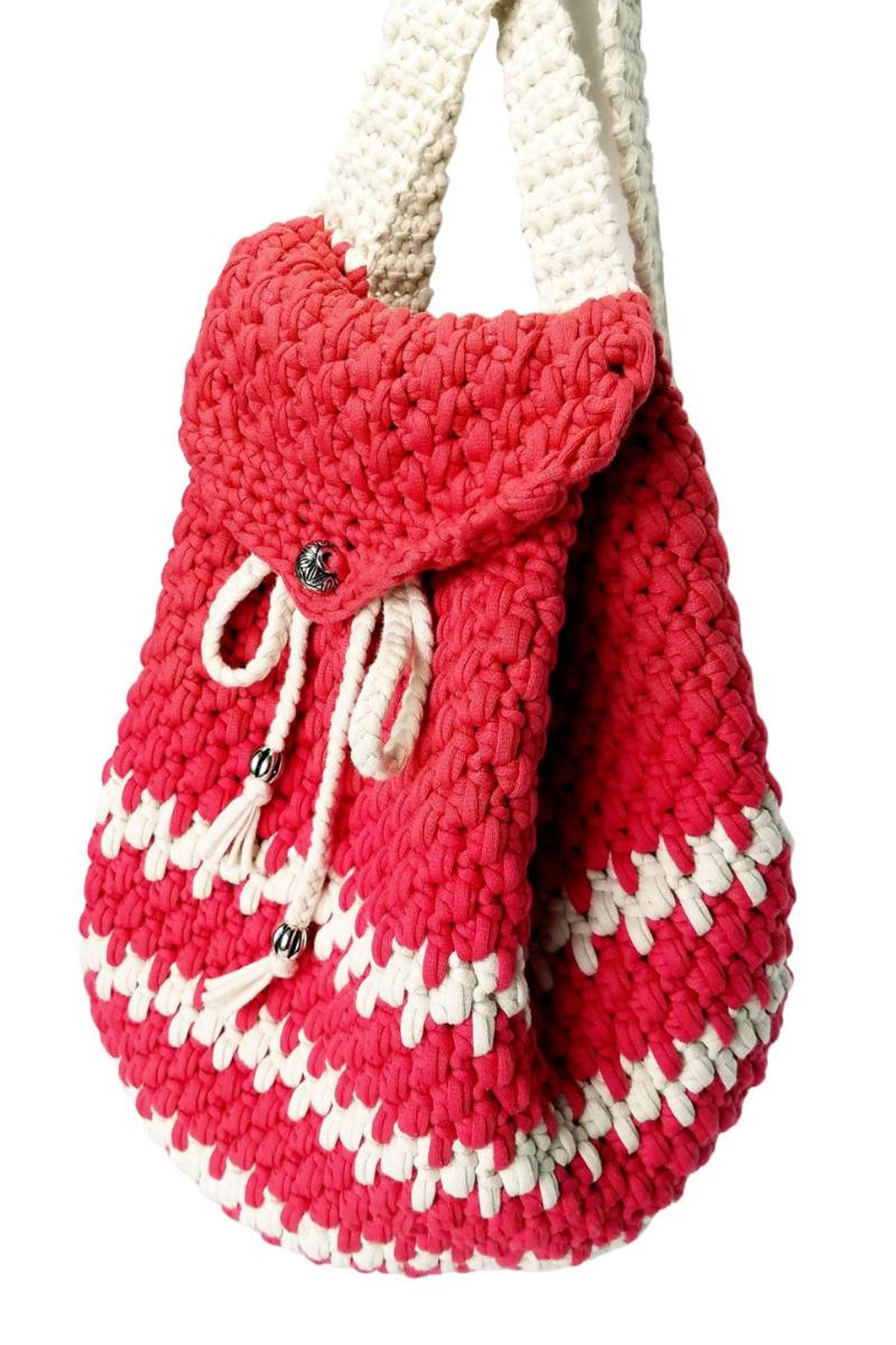 Crochet hook is 5 mm for straps and 6 mm for bag.