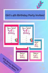 🎉It's her big day! 🥳Make it extra special with this 🔥 Printable Girl's 4th Birthday Invitation. 🎁The set comes with a bonus—matching Thank You Note Cards! 🎊Order it today, 🖨️print it and use it today! 😊