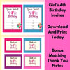 Printable Girls 4th Birthday Invitation | Girls 4th Birthday Invite Printable | BONUS Matching Thank You Note Cards
