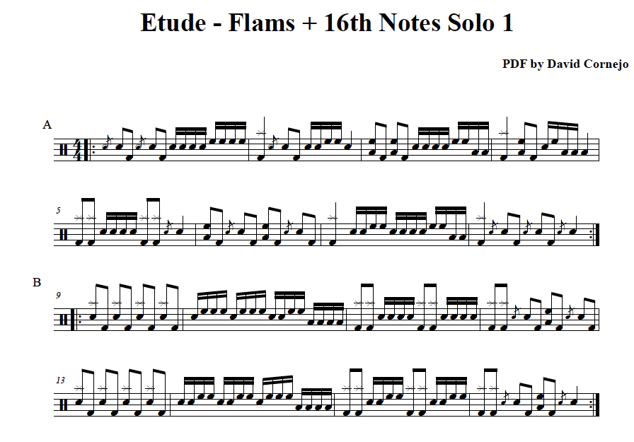 10 solos for the beginner drummer, mainly using singles strokes (around the drum set) and flams.