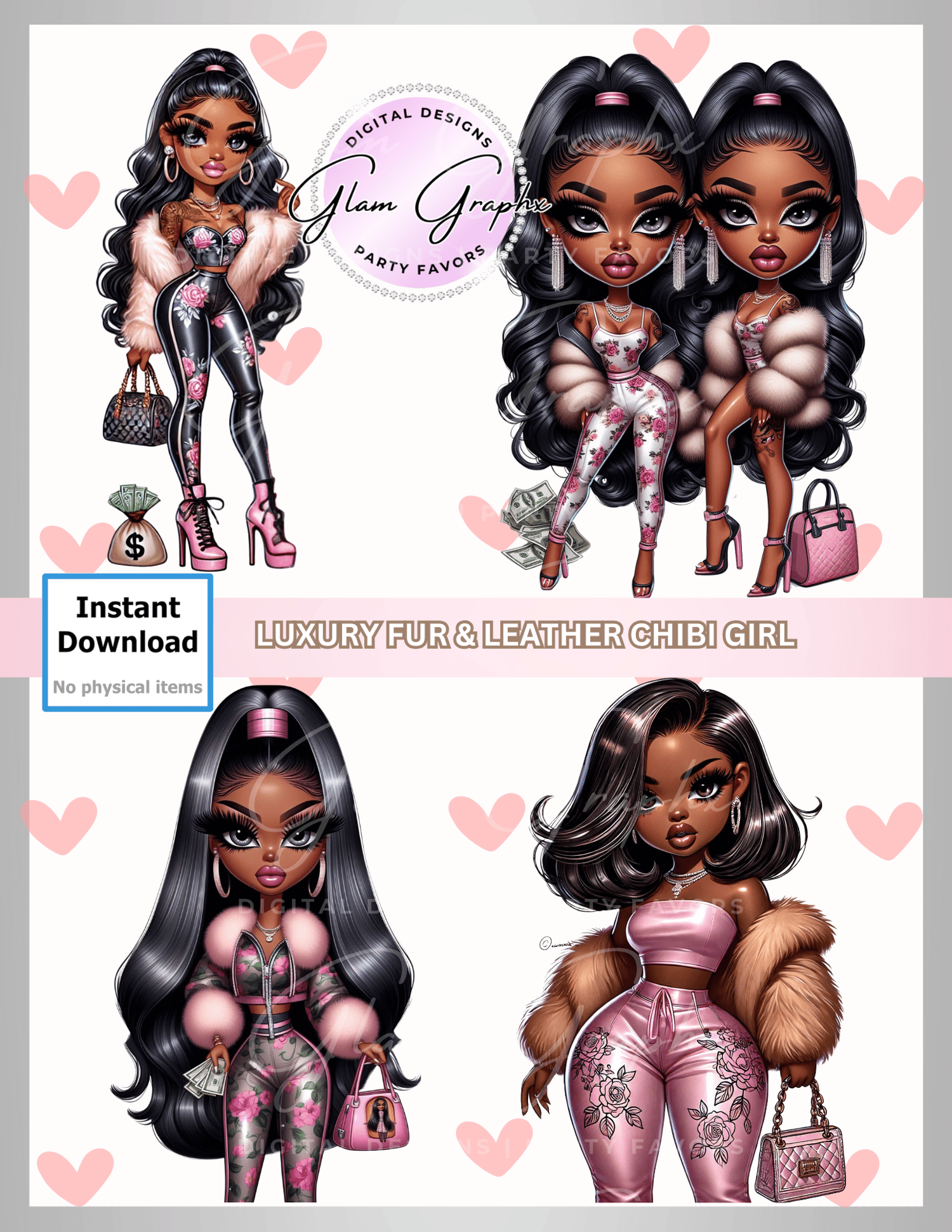 Set of 4 Pink Leather Chibi Images