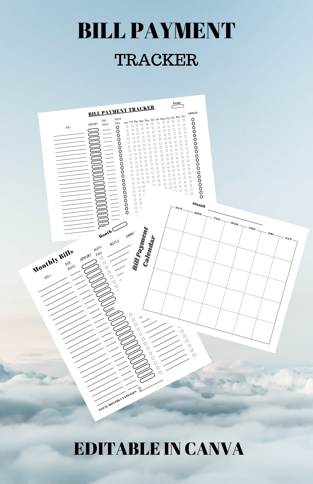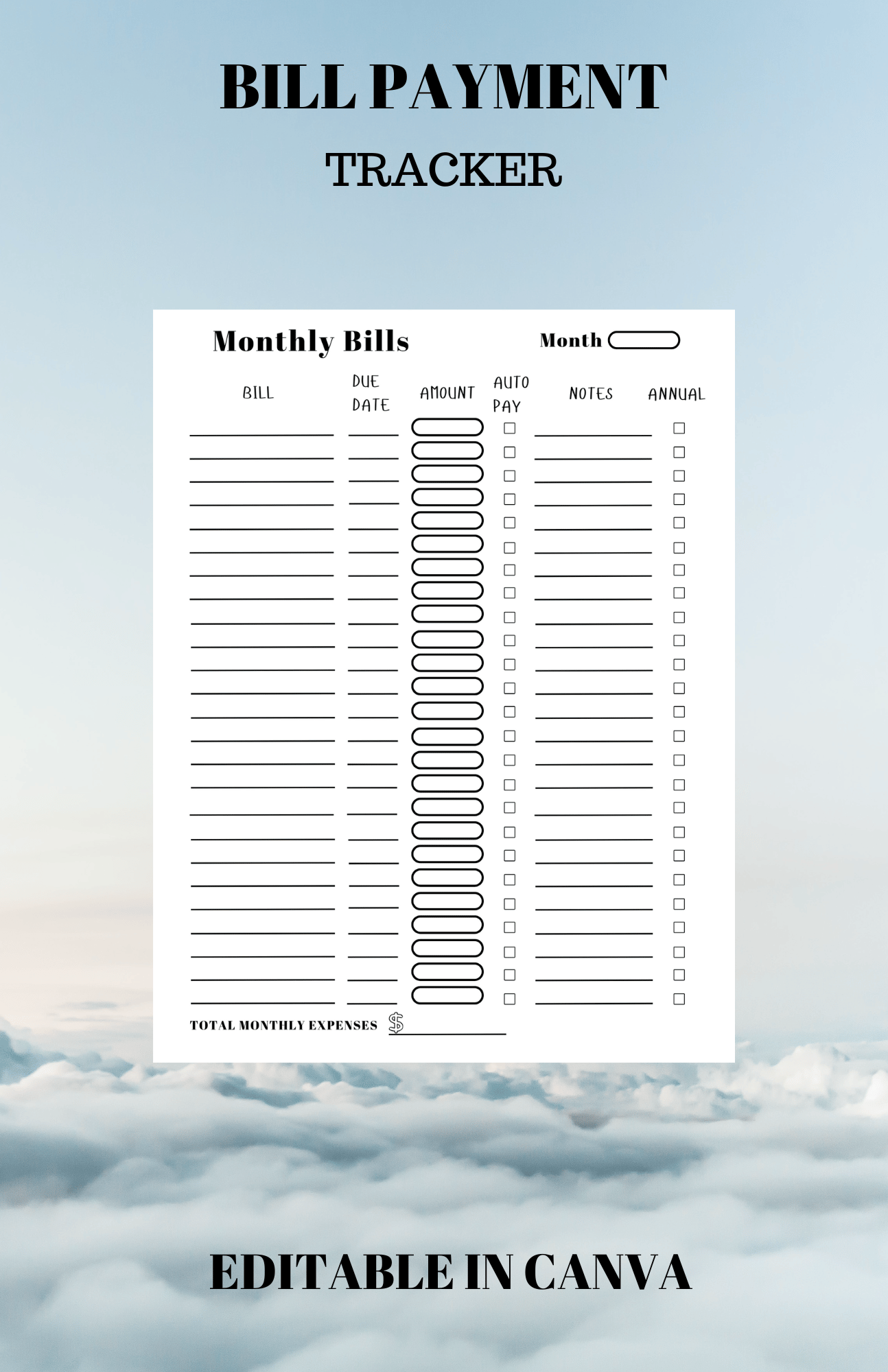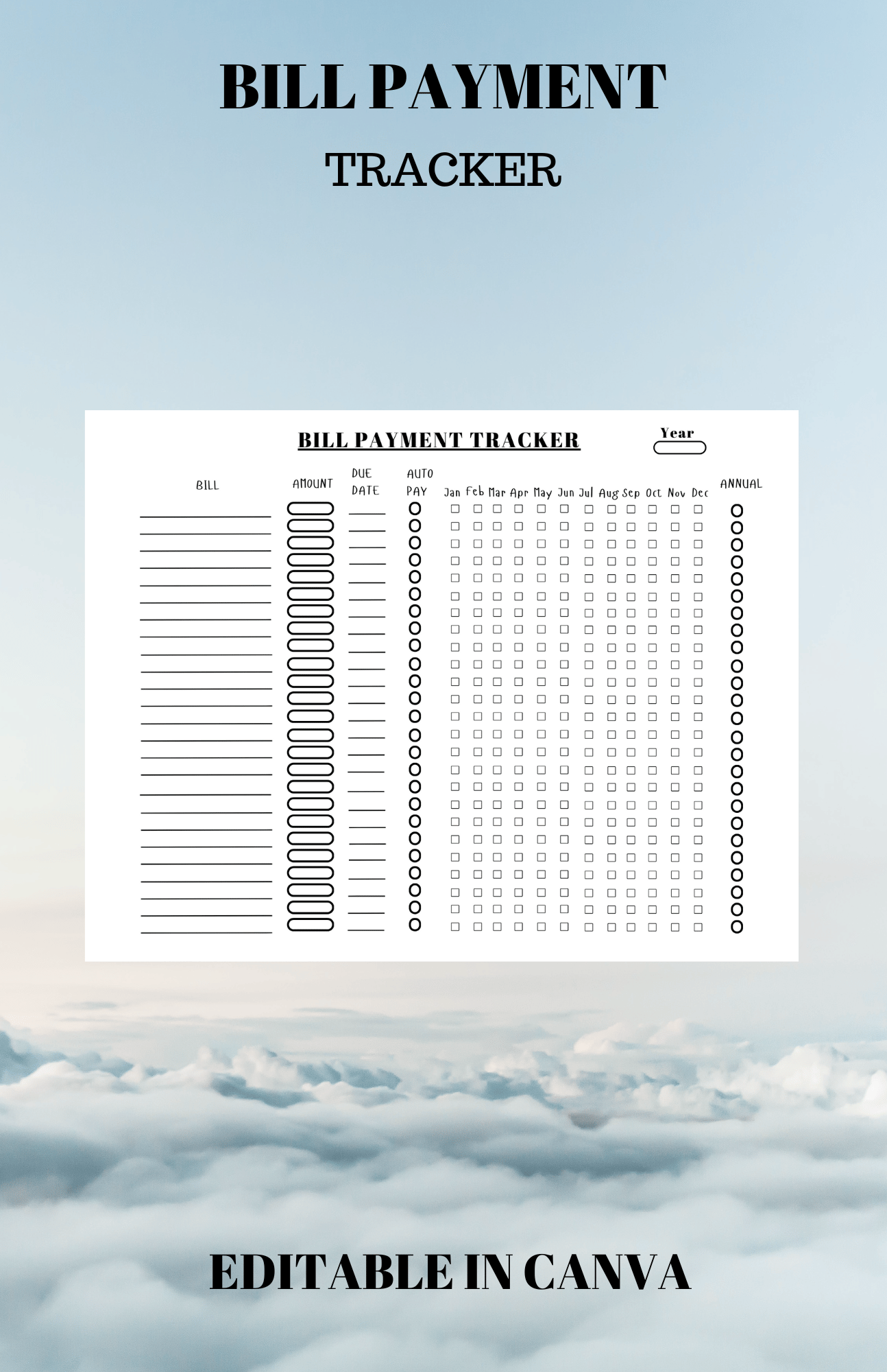 - 1 bill tracker calendar for any year/month