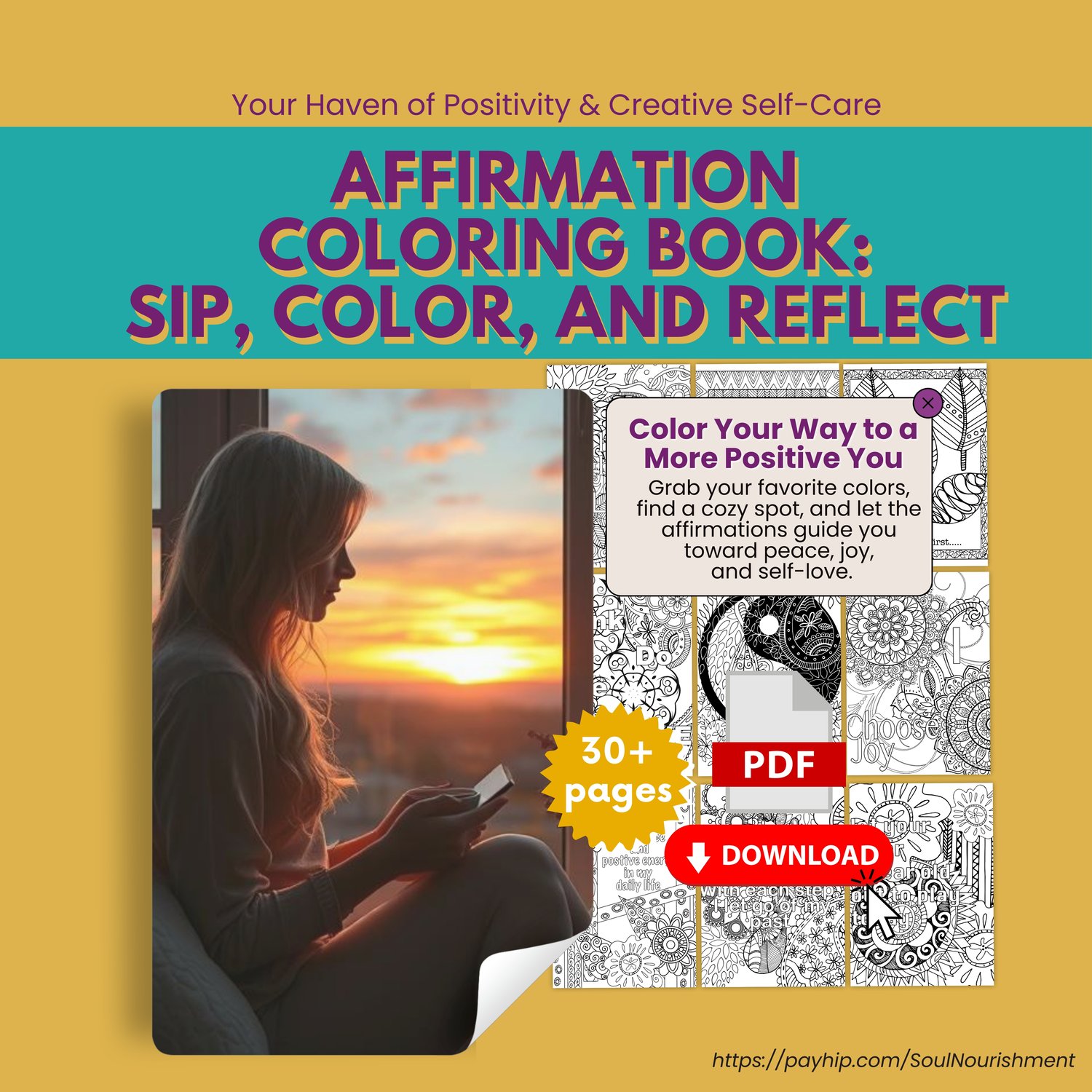 Imagine yourself in a cozy nook, coloring with intention, sipping something warm, and letting affirmations gently reshape your inner dialogue.
