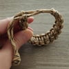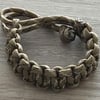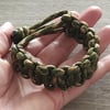 A handmade green Paracord bracelet with flecks of tan, black and white. 100% natural material. Made from Paracord 550.