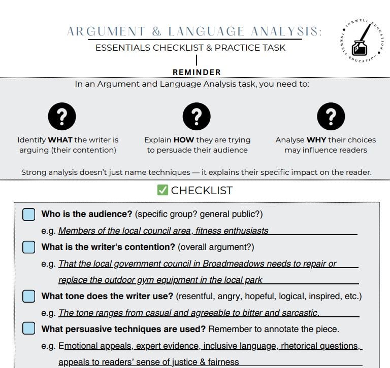 Argument & Language Analysis - Checklist, Sample Article & Practice Tasks