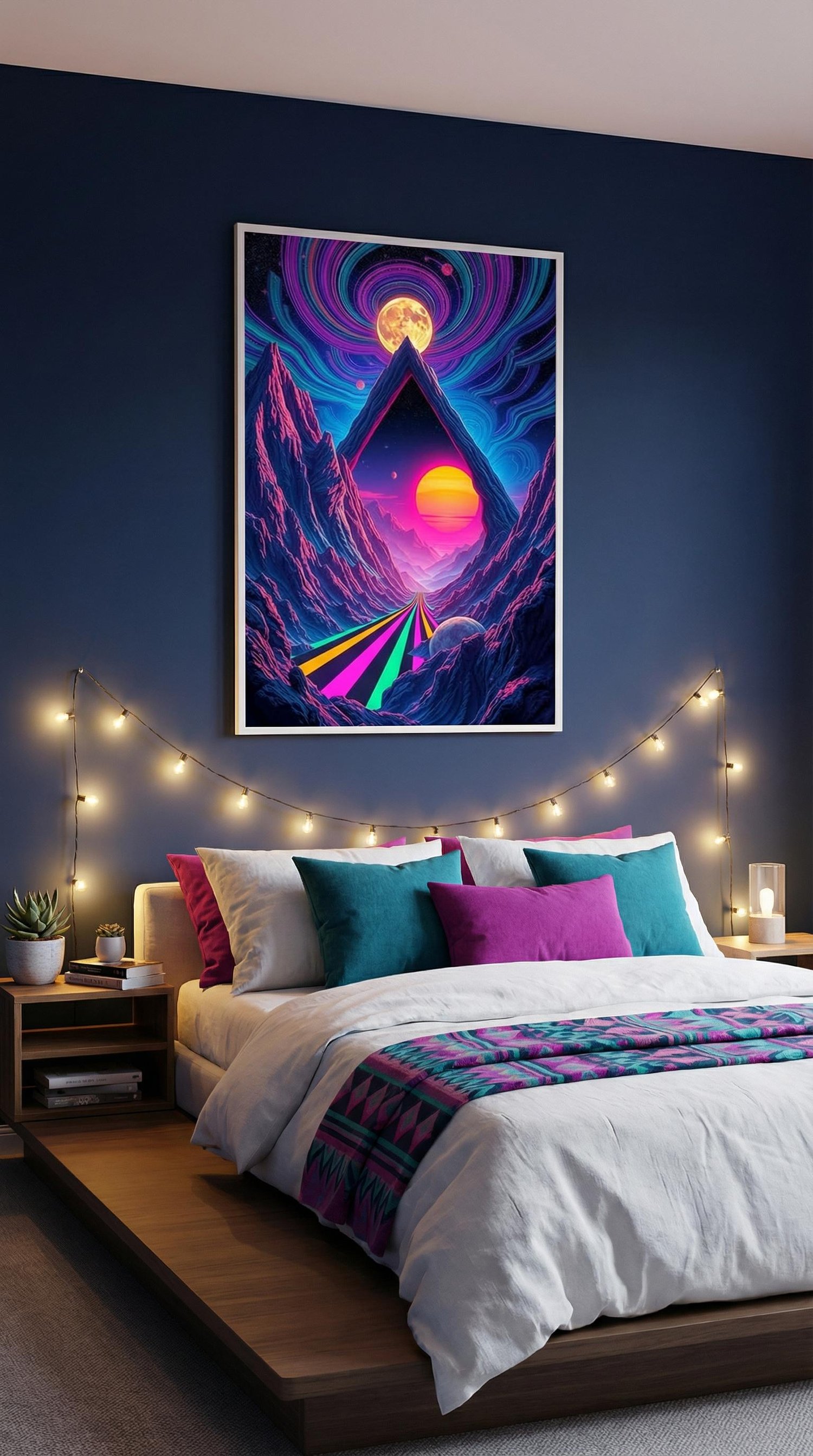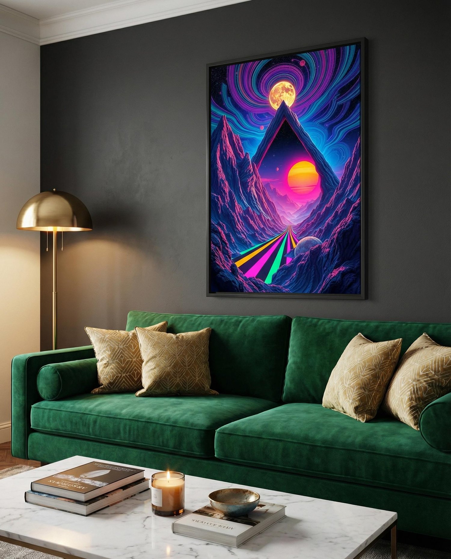 This high-resolution digital print captures the essence of 80s retrowave vibes—neon glows, surreal landscapes, and a touch of mystery—perfect for adding bold, nostalgic energy to your space. Ideal for fans of vaporwave, cyberpunk, sci-fi, or psychedelic art.