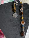 Handcrafted using earth toned glass beads and metal charms, including Paris charm, airplane charm, boot charm, and she believed she could so she did charm. Pendulum point is glass earth toned. Each pendulum is a one-of-a-kind creation hand crafted to create a unique and special look.