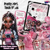 Pretty Pink Tech Vibes | 80 PNG Digital Planner Stickers, Elements & Dolls | Instant Download