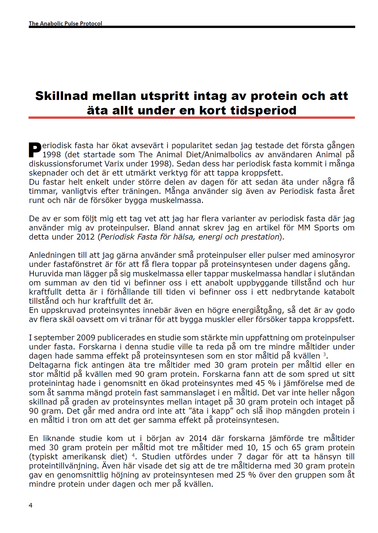 Är du redo att revolutionera din träningsnutrition och låsa upp maximal muskeltillväxt genom smarta, tidsoptimerade intag? I The Anabolic Pulse Protocol från 2015 presenterar Joachim Bartoll en revolutionerande metod baserad på banbrytande forskning, som utmanar gamla myter om konstant proteinintag och istället fokuserar på pulser för att boosta proteinsyntesen.
