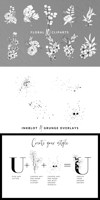 This Black & White Floral Line Art Alphabet Number Split Monogram Collection with Floral Arrangement Cliparts & Inkblot Grunge Overlays will help you create a huge range of products - wall art, posters, cute gifts for your loved ones, mugs, cards, monograms, wedding invitations, party invitations, party decorations, flyers, blogs, beautiful branding, packaging, notes, albums, greeting cards, stationery items, journal kits, scrapbook elements, stickers, mood boards, vision boards, social network templates and promotions, sublimation design, covers and much more!