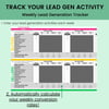 The heart of any successful real estate business is how well you can convert leads to closings. This lead generation tracker provides everything you need to take your lead generation to the next level! You'll be able to easily track all your lead generation activities including where you leads come from and what your conversion rates are from lead to setting appointments, getting agreements signed, and closings.