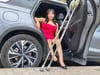 Rose the Polio Girl strolls through the park in high heels and on crutches.