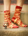 Sizes: XS (S, M, L, XL); finished foot circumference 7 ½ (8, 8 ½, 9, 9 ½)”/19 (20.5, 21.5, 23, 24) cm and finished foot length 8 ¼, 9, 9 ½, 10, 10 ½)”/21 (23, 24, 25.5, 26.5) cm, customizable