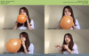 Little challenges herself to b2p a small orange balloon. She gets startled when it pops.