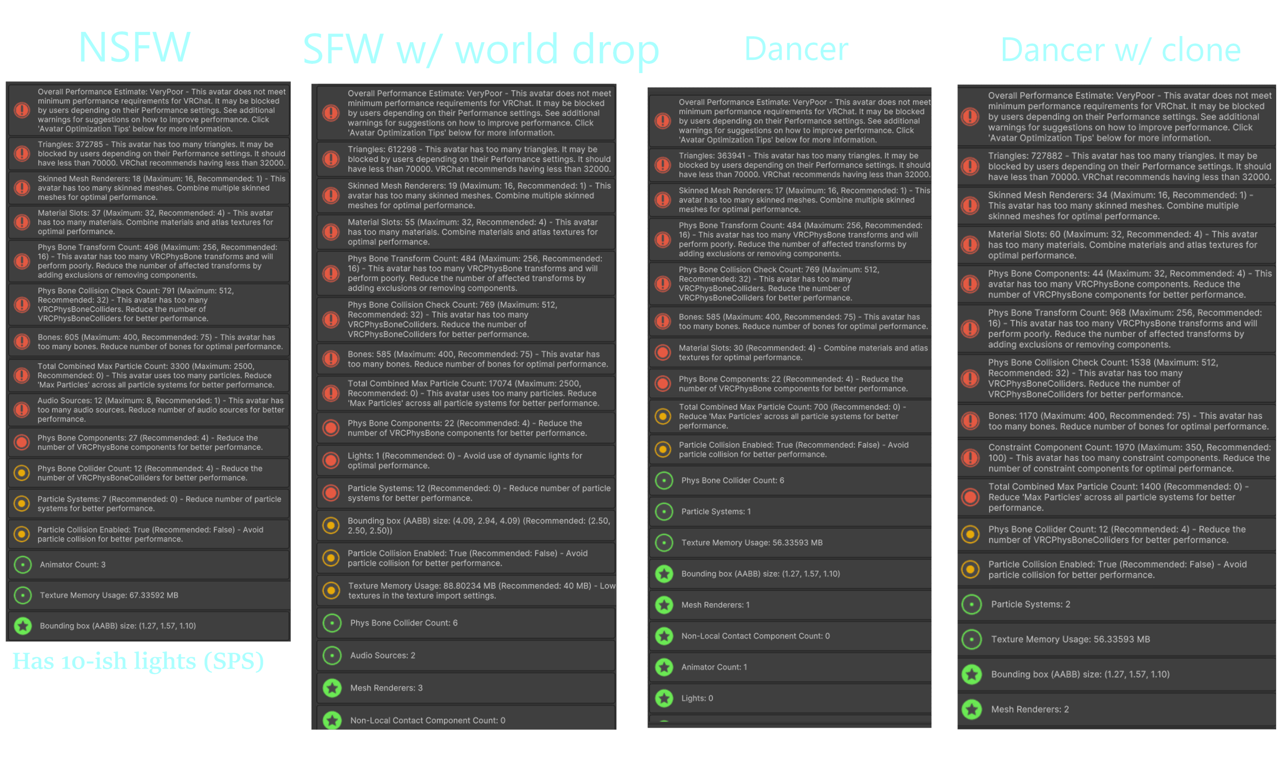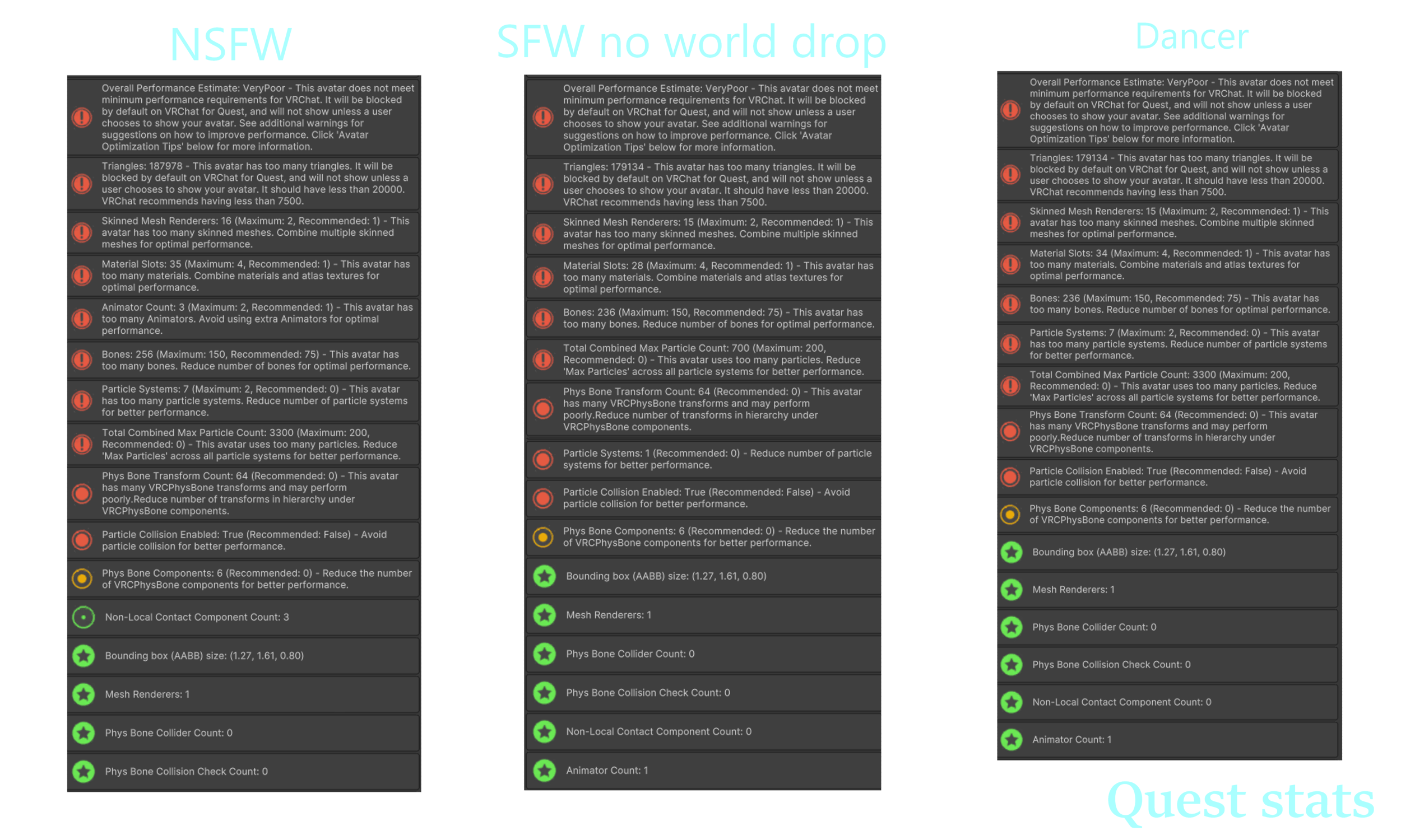DISCLAIMER: Due to the nature of physbones, I cannot fix every clipping issue. The outfits themselves have no clipping (as far as I am aware), but having physbone movement makes it so they clip no matter what as you move around. I currently have no knowledge on how to fix this. If I learn how to prevent this, I will update the model <3