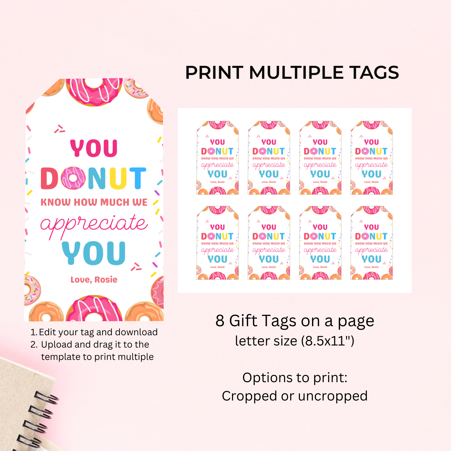 TCHR007 Printable Teacher Appreciation Tags | You Donut Know How Much We Appreciate You | Donut Teacher Gift Tag | Canva Editable | Instant Download