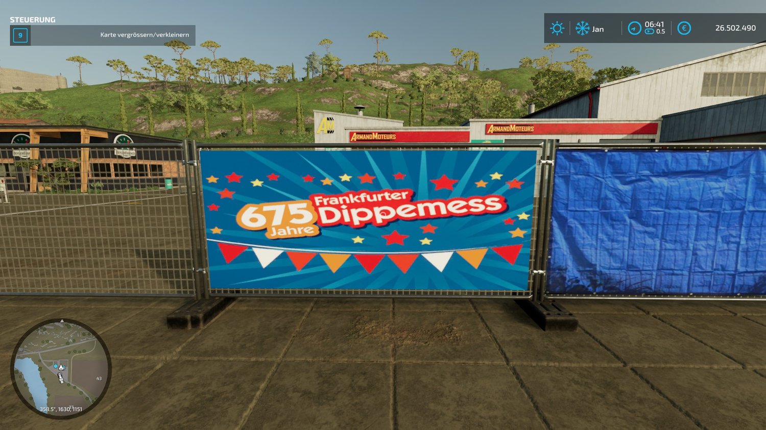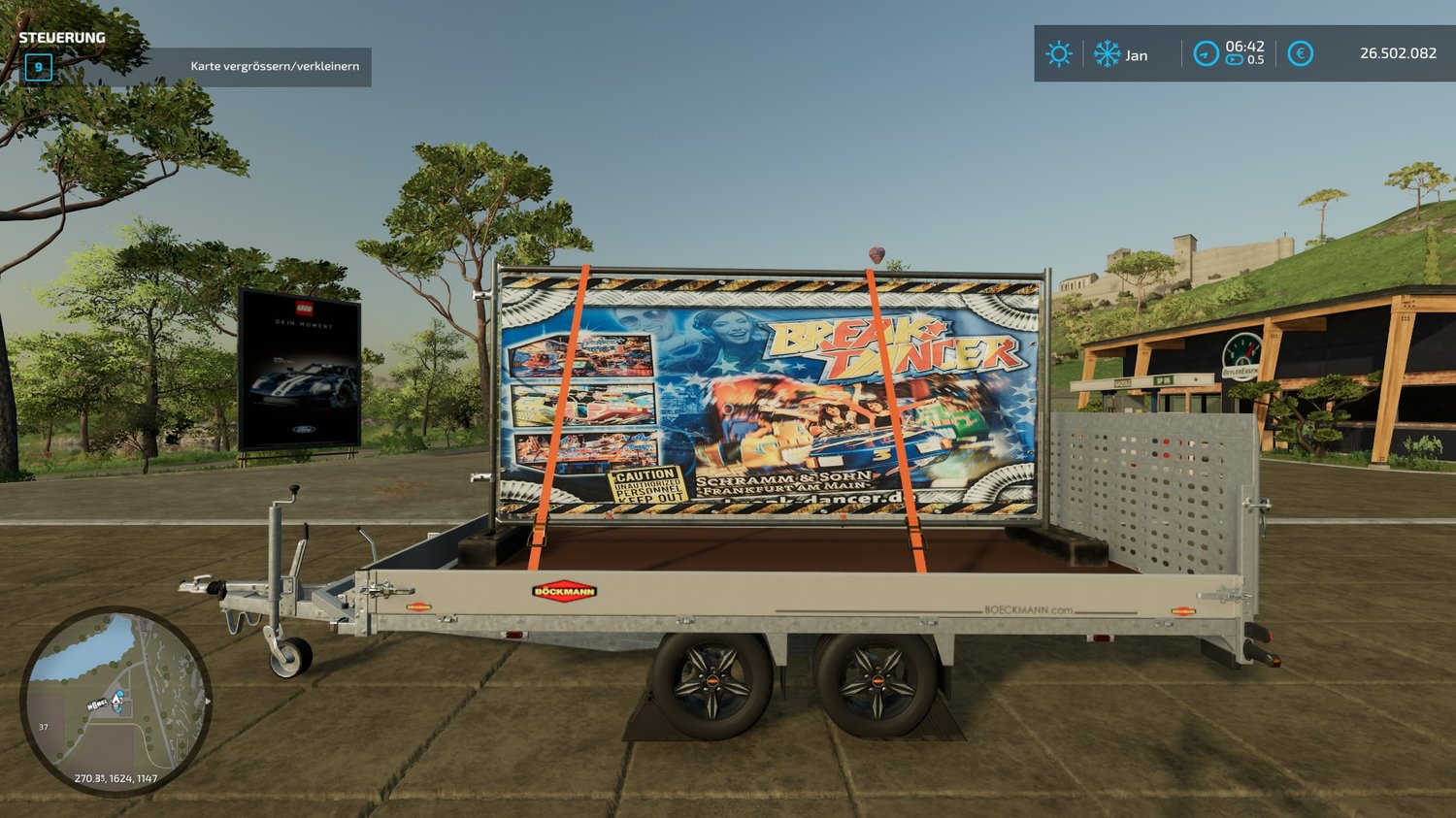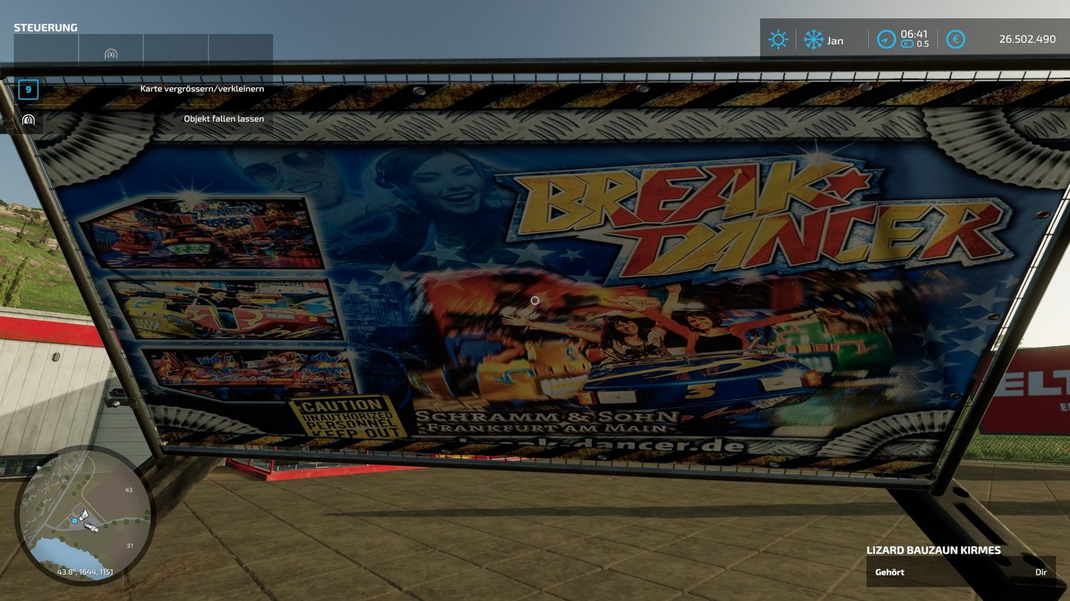 Bauzaun mit verschiedenen Planen. Bauzaun kann im Shop gekauft und verändert werden. Es stehen aktuell vier verschiedene Planen zur Auswahl. Bauzaun kann per Hand aufgestellt und verladen werden. Spanngurte sind auch möglich.
