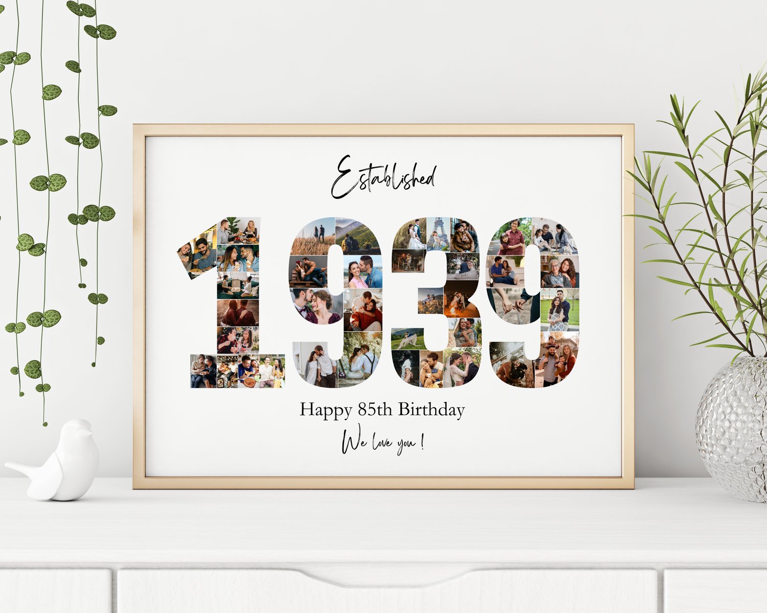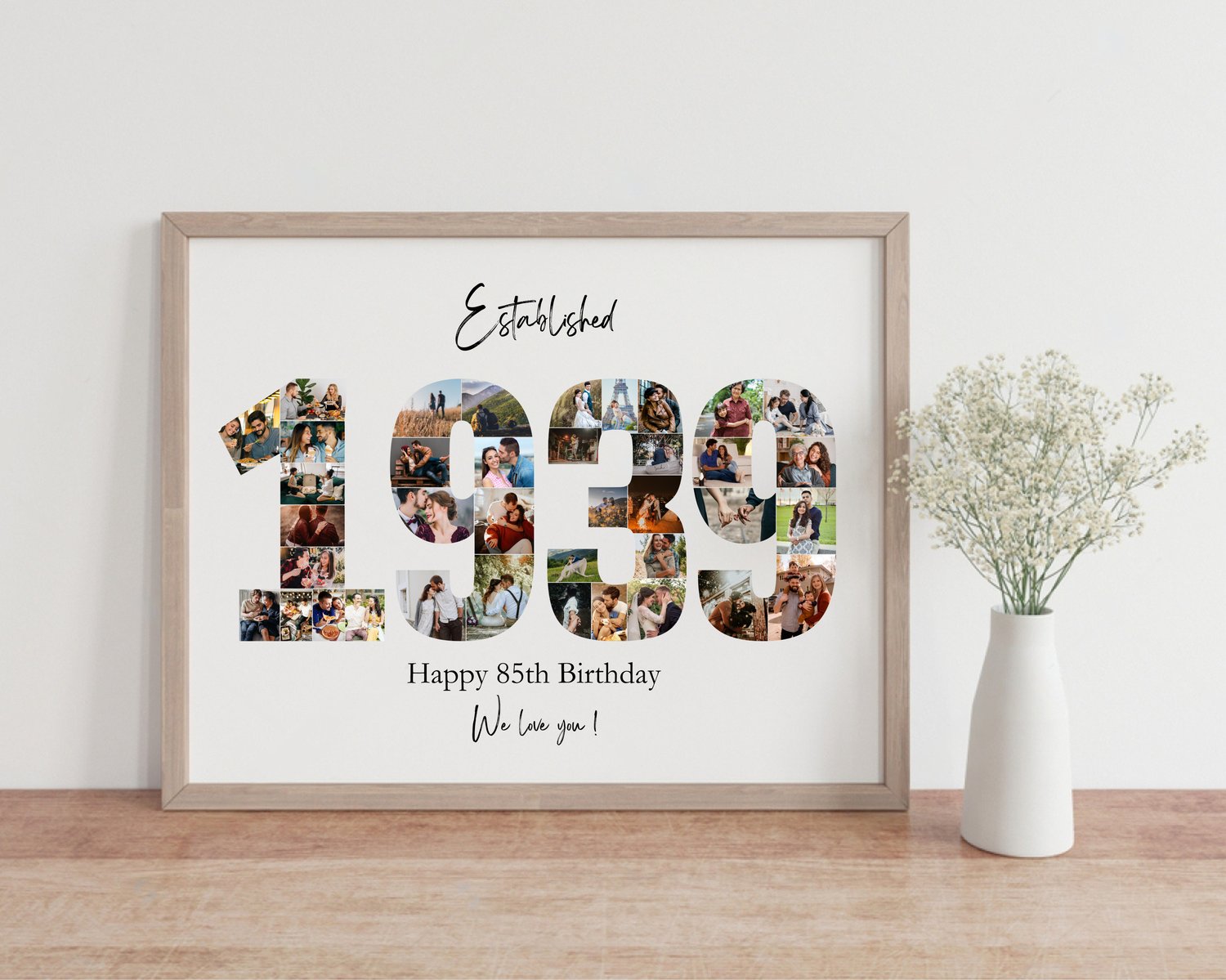 EDITABLE Custom 85 Collage, Year 1939, 85th birthday anniversary Photo collage print, Gift for grandma grandpa