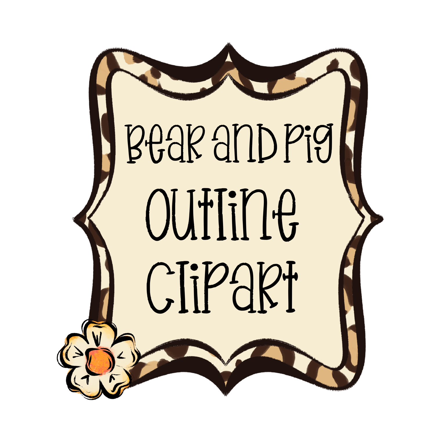 Bear and Pig outline clipart set (set of 9) Sublimation design, Png, Instant download