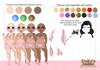 four different skin tones, three eye colours and 15 hair colours in one hairstyle)