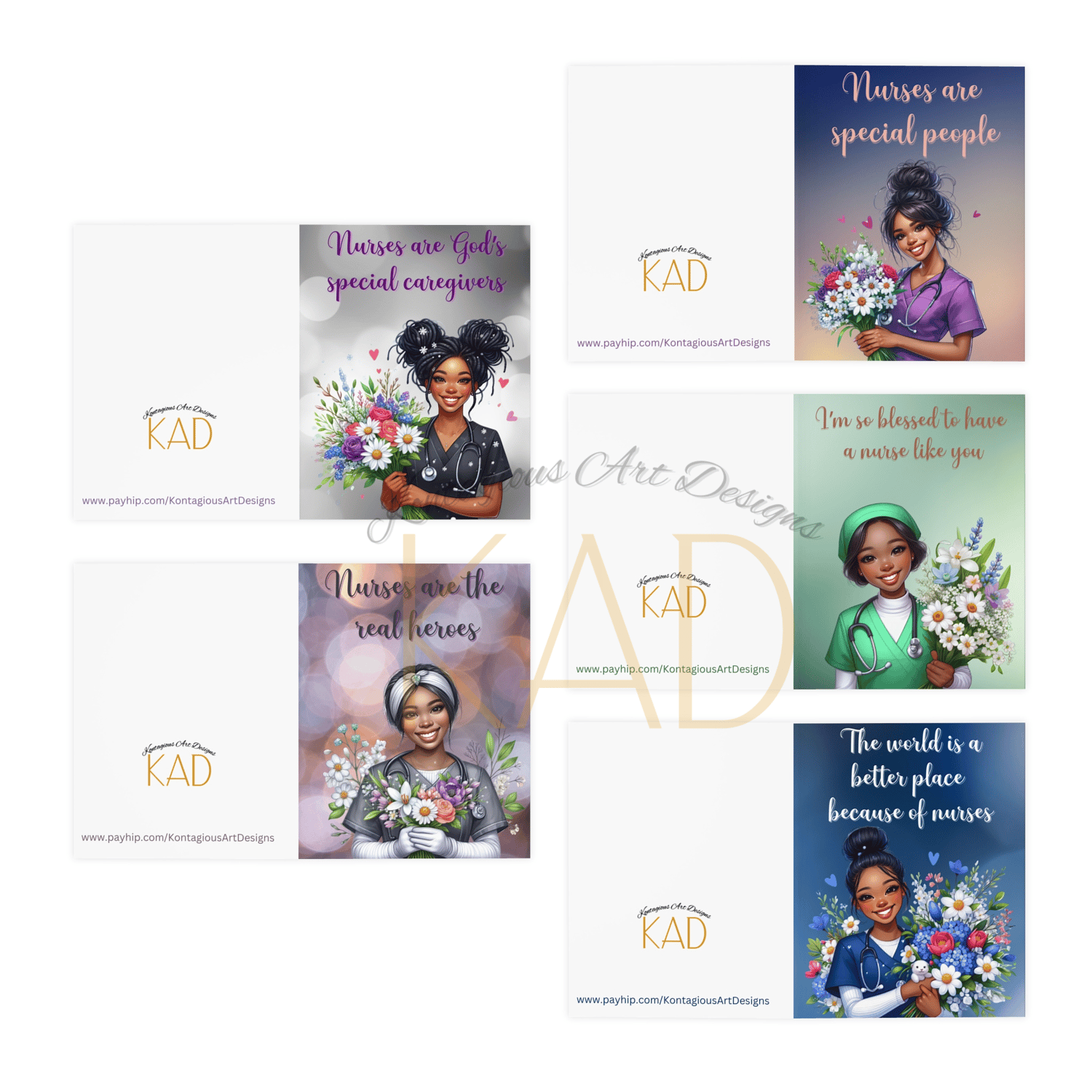 These printable greeting cards are perfect for sending a note of appreciation for your favorite nurses. Whether they are long-distance or on the other side of town, the person you send this greeting card to will love to receive a printed, handwritten note from you. This file contains (5) 4.25 x 5.5 inch PNG files