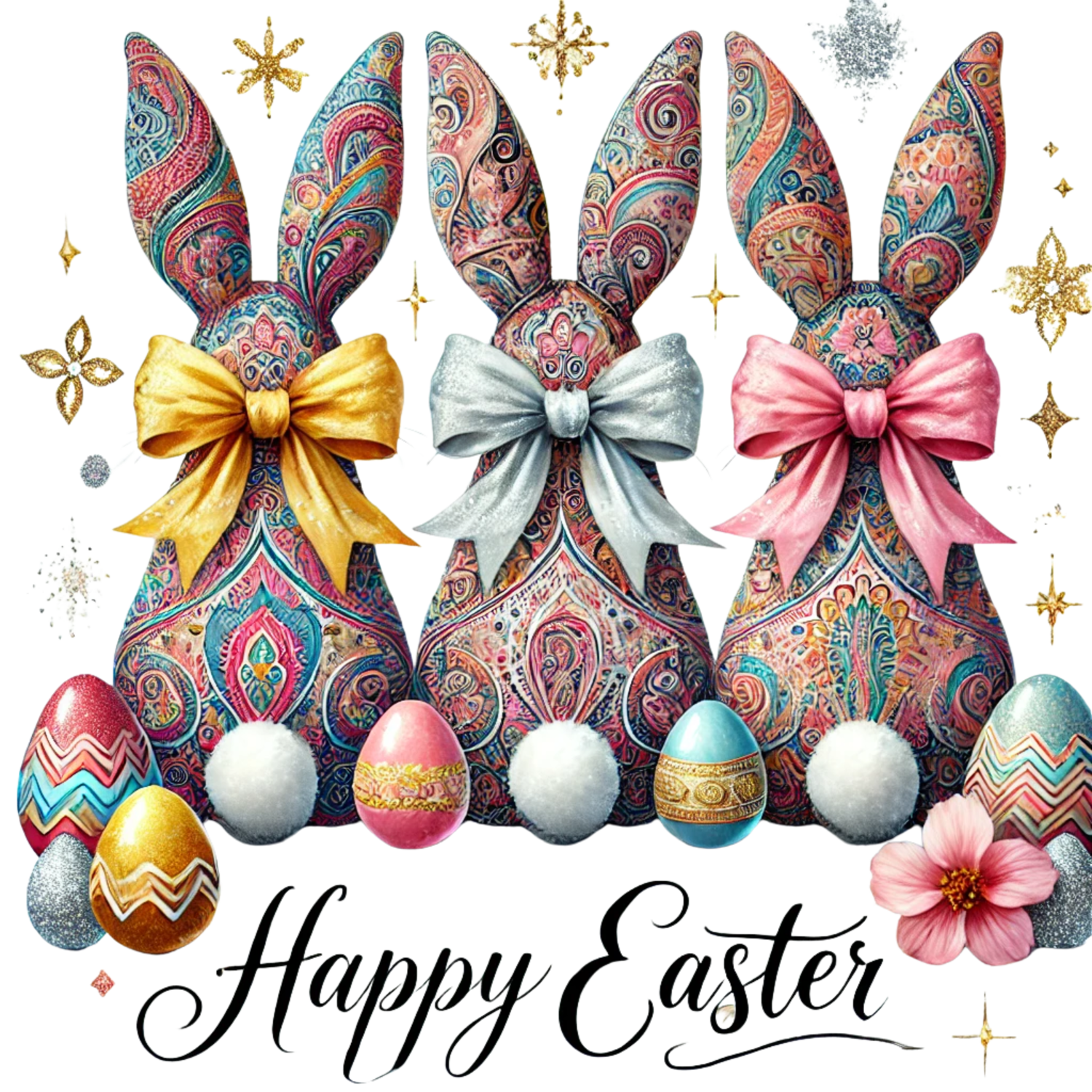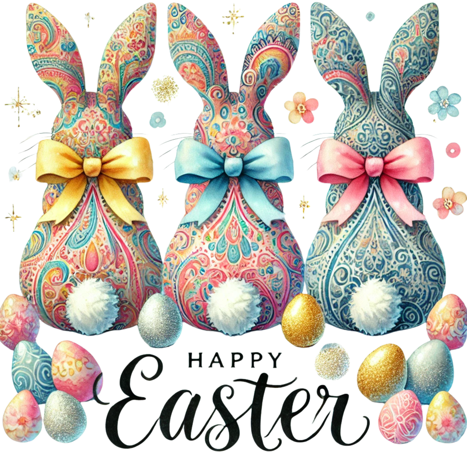 Paisley Easter Bunny PNG Bundle | Glitter Eggs + Pastel Bows | 5 Designs
