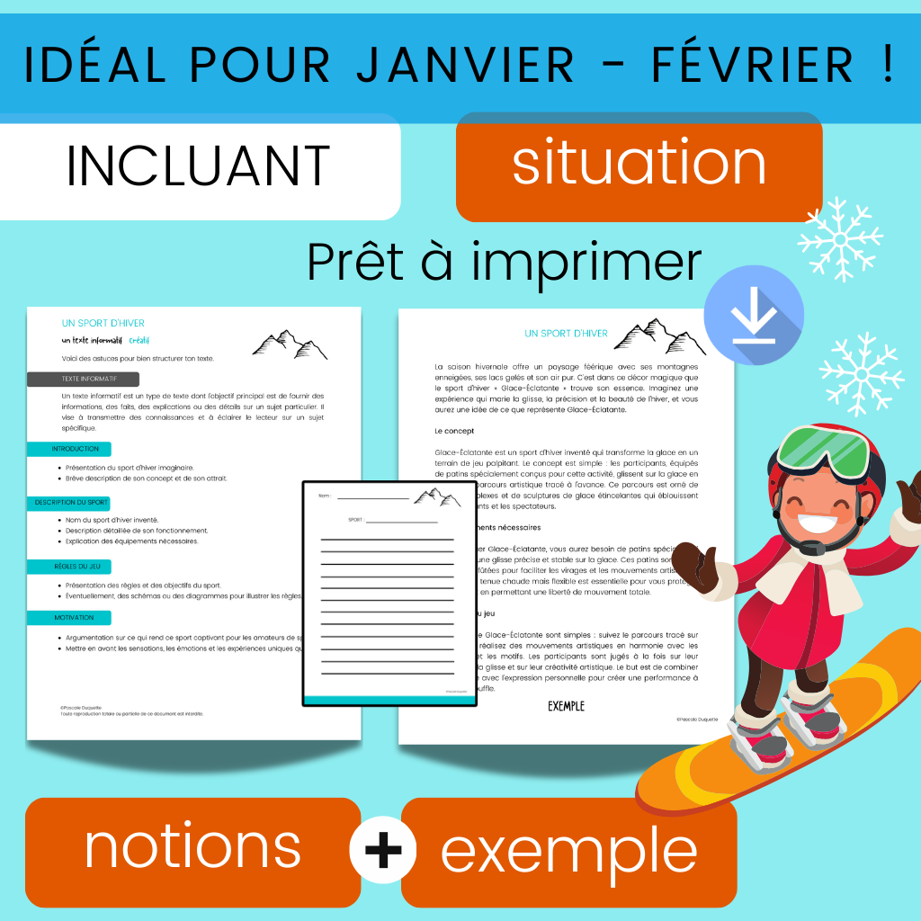 Situation d’écriture Hiver – Écrire Texte Informatif (Un Sport d'Hiver) – Écriture informative 2e-3e cycle