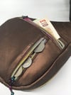 The "AQUADROP BAG" is a fun waterdrop shaped clutch that features a fully lined interior as well as a main zipper that closes it on the side. On the front, there are two zipper pockets, one for small basic items like chapstick, lipstick , keys, a hand sanitizer while the other can be used as a coin pocket. This functional bag can store a lot of items.