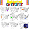 The wonderful 50 states of America highlighted in different colors to help students find each state. Contains a U.S.A map with full color and one in black and white.