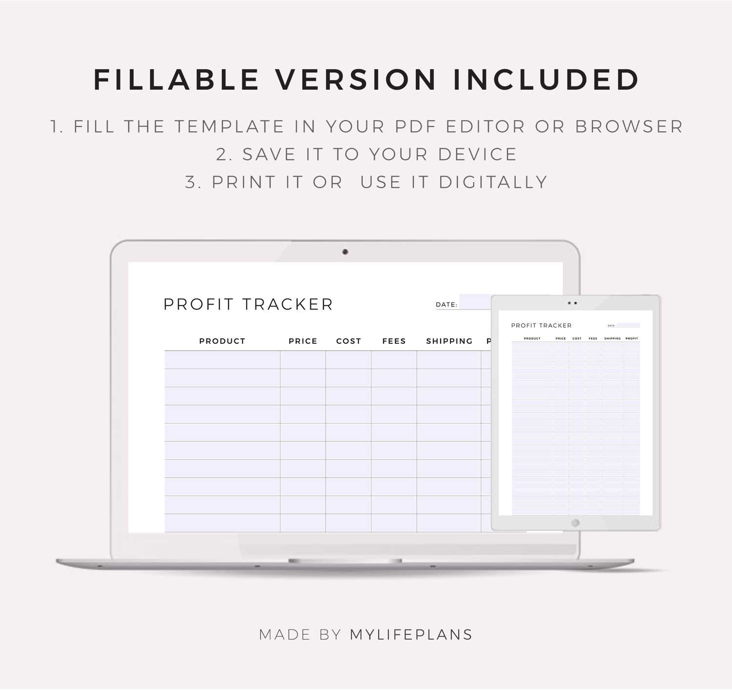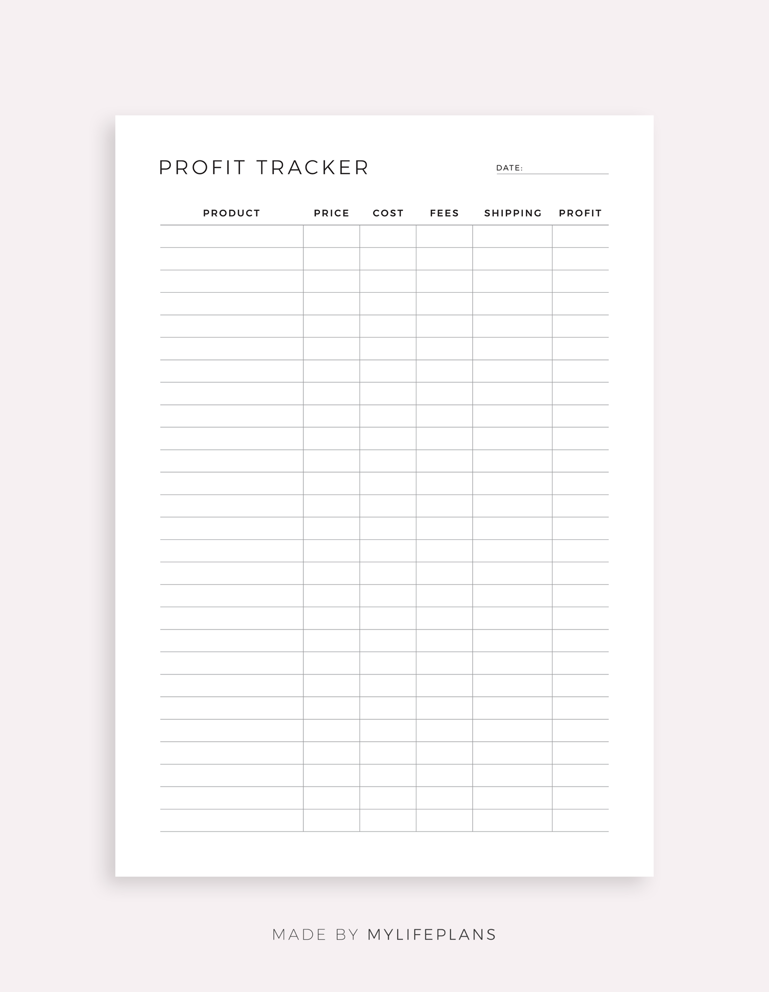 This is a printable profit tracker — just download, print, and start using it right away.
