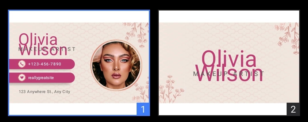 A stylish and elegant Makeup Artist business card template, perfect for beauty professionals who want a clean and professional brand image.