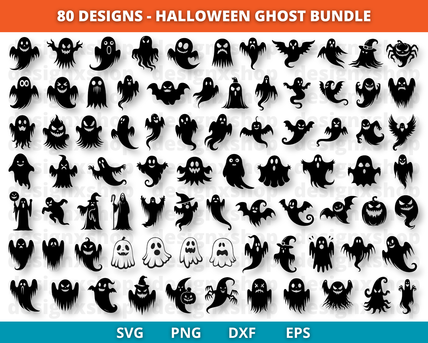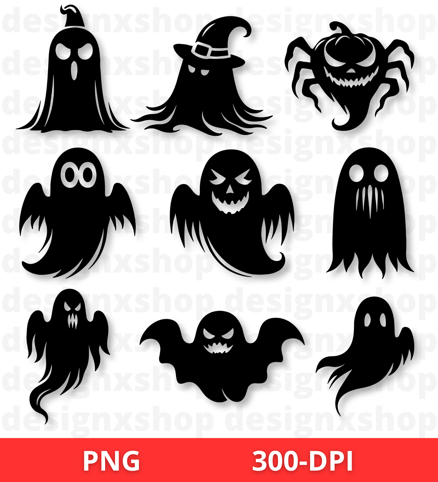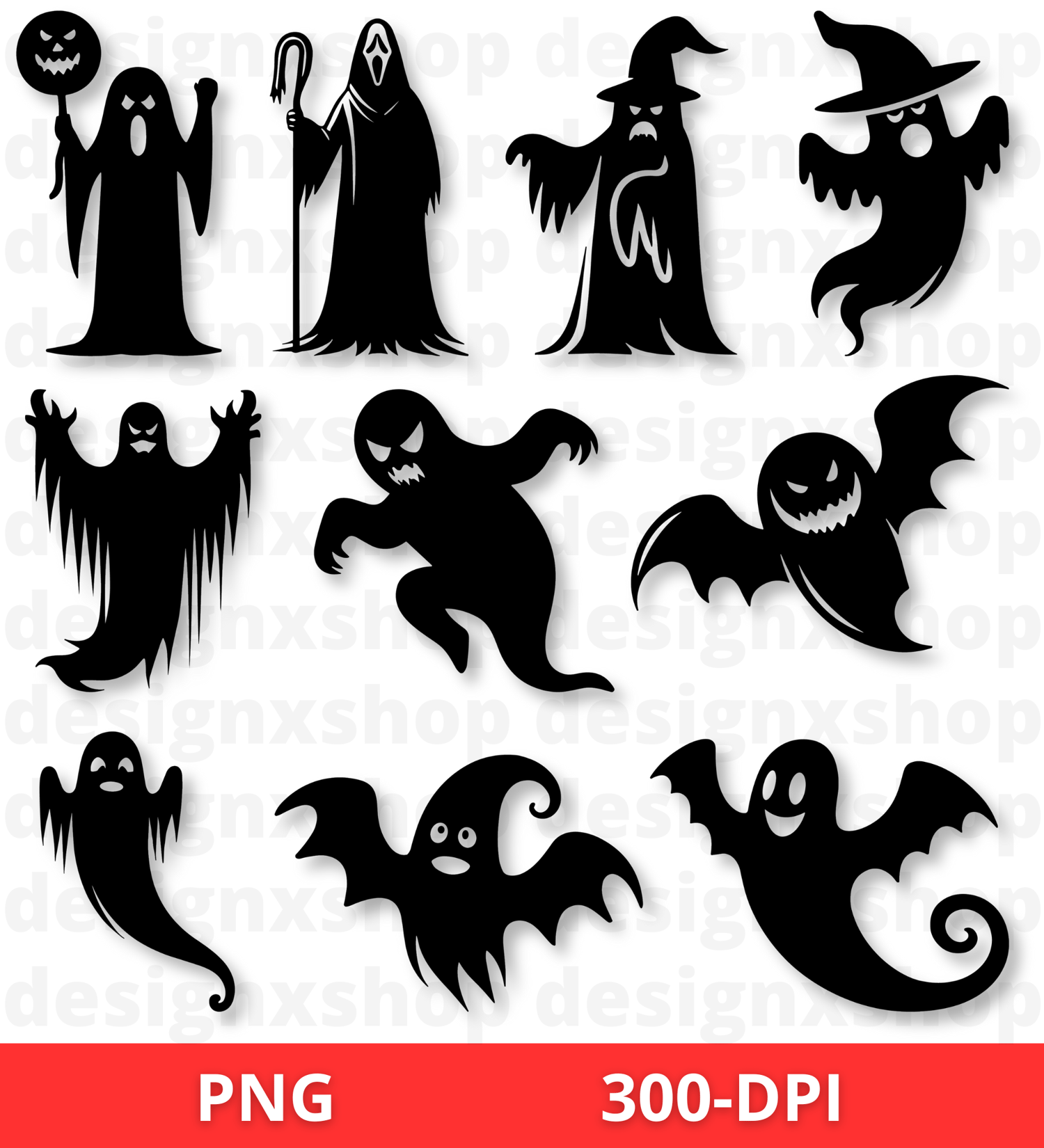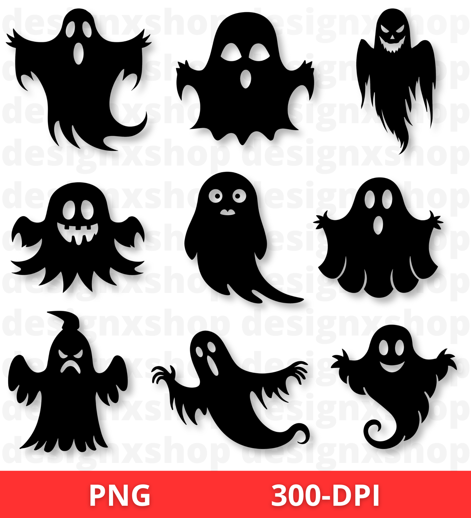 Ghost SVG Bundle, Ghost PNG Bundle, Ghost Clipart, Ghost SVG Cut Files for Cricut, Ghost Silhouette, Halloween Ghost Svg Png Files
