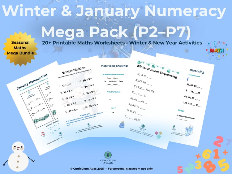 Winter & January Literacy & Numeracy MEGA BUNDLE (P2–P7) | 40+ Printable Worksheets