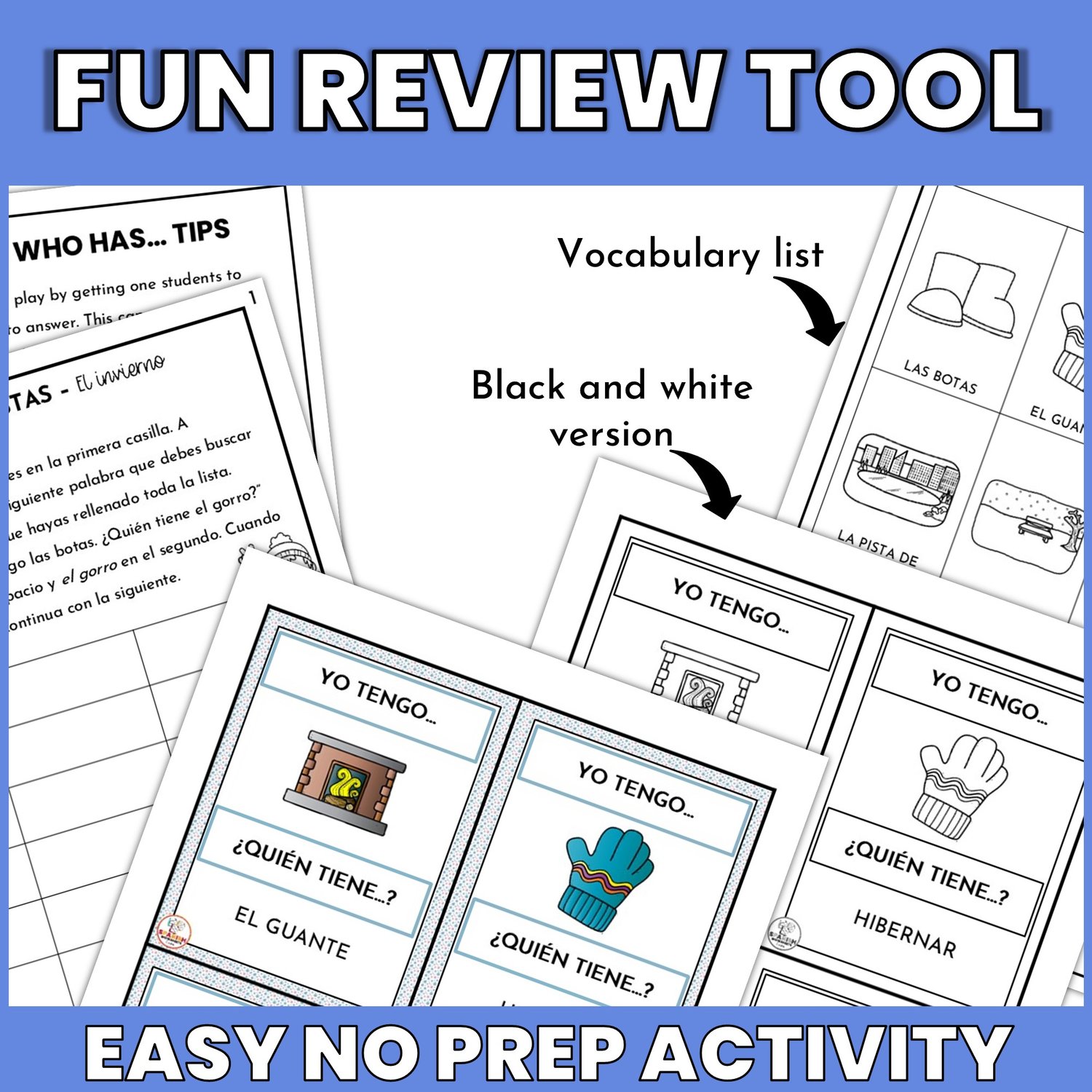Get your students talking and confidently reviewing their Spanish winter vocabulary—add this versatile game to your lesson plans today!