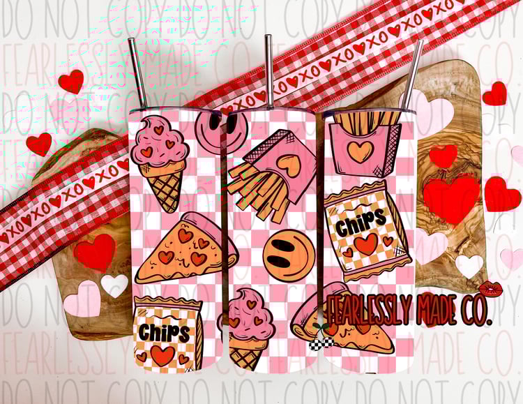 It holds 20 oz of your favorite beverage; has a plastic lid and comes with a reusable straw.