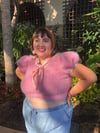 The 'Short and Sweet Sweater' is reminiscent of the classic '30s and '40s puffy short sleeve cropped style. It is a fluffy, comfy, and vintage-y looking top that is great for laying over a long sleeve shirt or wearing on its own. This makes it a great pattern for any season or climate!