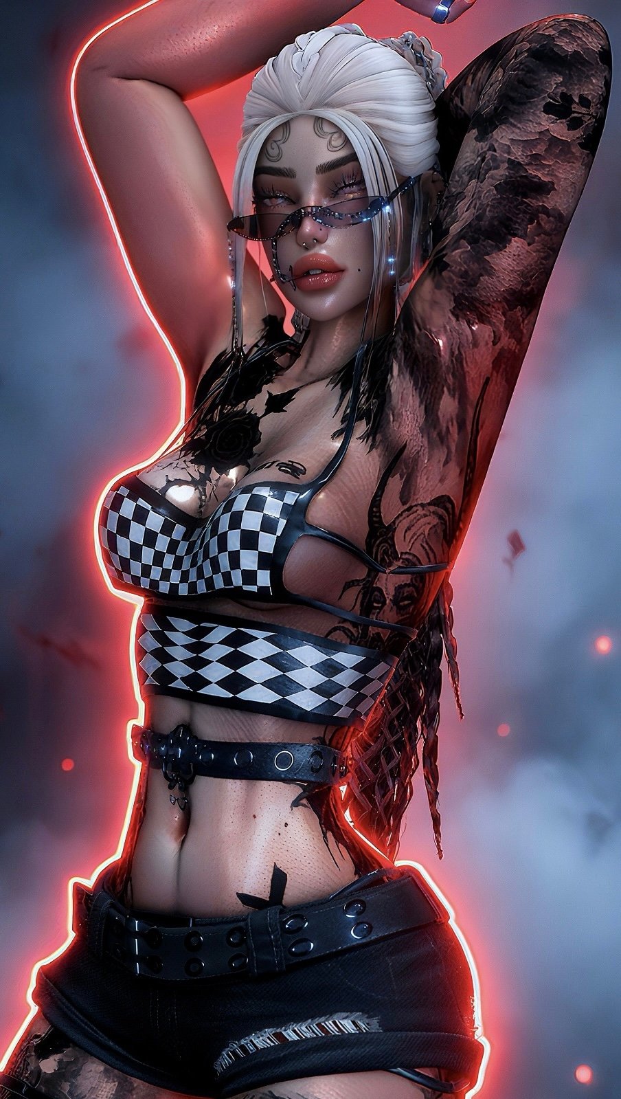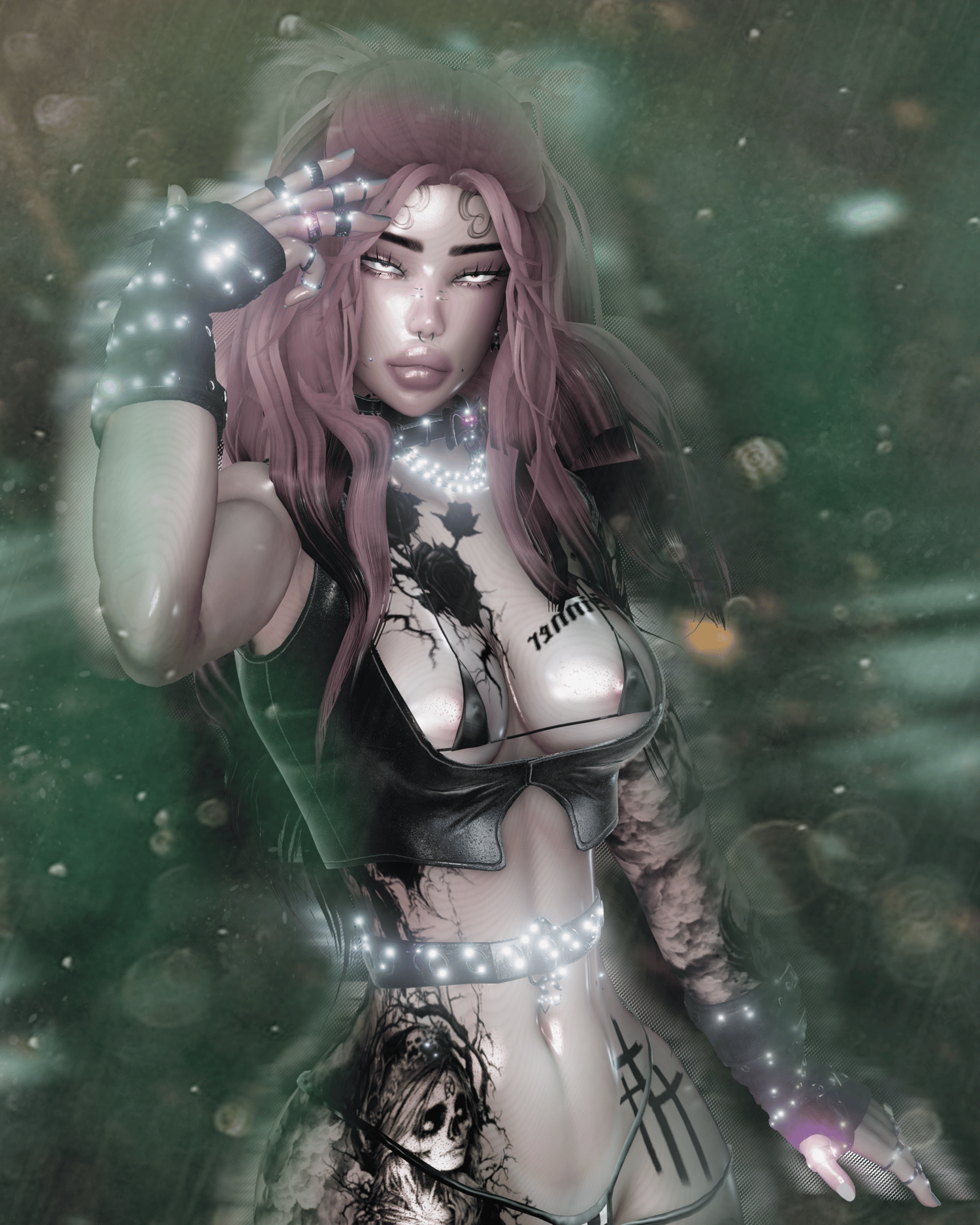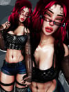 Warmers , Hat , Face Chain , Pasties , LoliPop , Crown , Belt 1 , Parch + Horns , Glasses , Piercings , Tattoo , Pants , Shorts , BodySuit 2 , Garter + Bikini 2 + Bikini 3 + Sleeves , Shirt 4 , Laced Pants + Shirt 3 + Belt 2 , Skirt + Body Suit 1+ Chain + Bras + Bikini , BodySuit 3 , Talk Spooky , Pasties , Bikini , Boots , Leggings + Shirt , Heels , Convers , Texture Hair , Hair5 ,Hair4 , Hair3 , Hair 2 , Hair 1