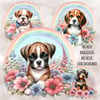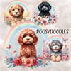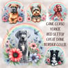 35 dogs with watercolour flowers and rainbow detail. * Included breeds: Airedale, Beagle, Border Collie, Boxer, Bulldog, Cane Corso, Cockapoo, Spaniel, Dachshund, wolf/Deerhound, Doberman, French Bulldog, German Shepherd, Golden Retriever, Great Dane, J