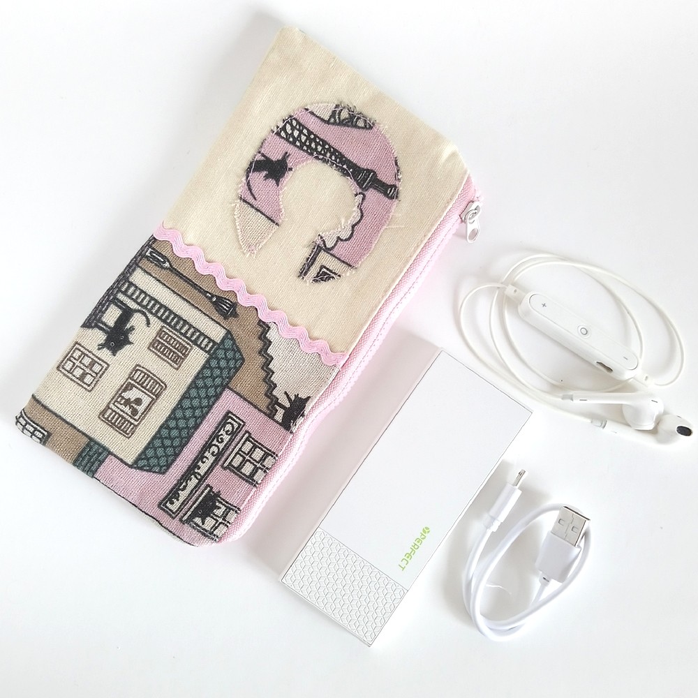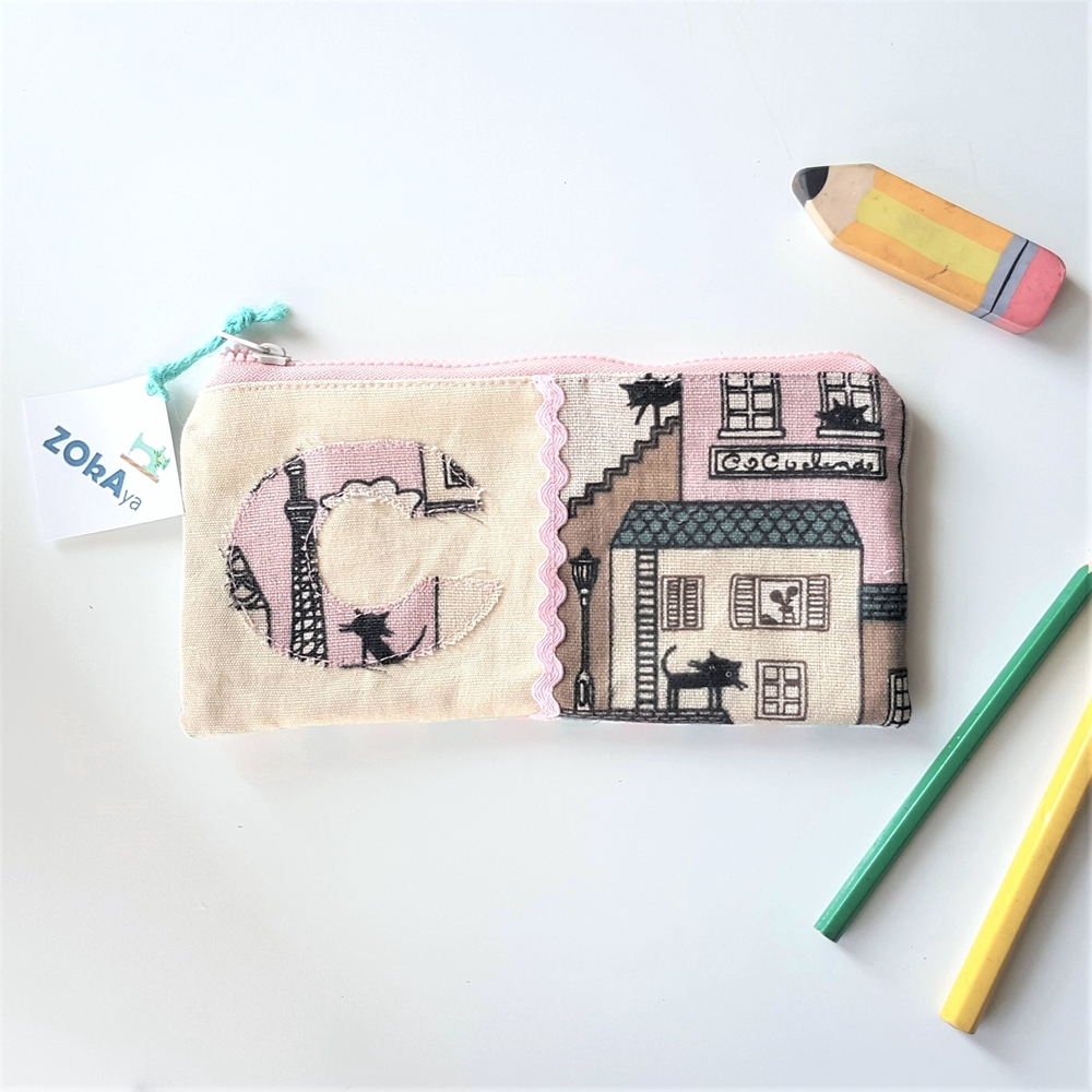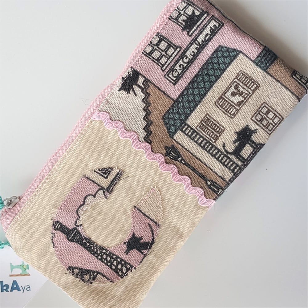 Alphabet Applique Pouch, Mask Pouch (c, Pink x Black cats)
