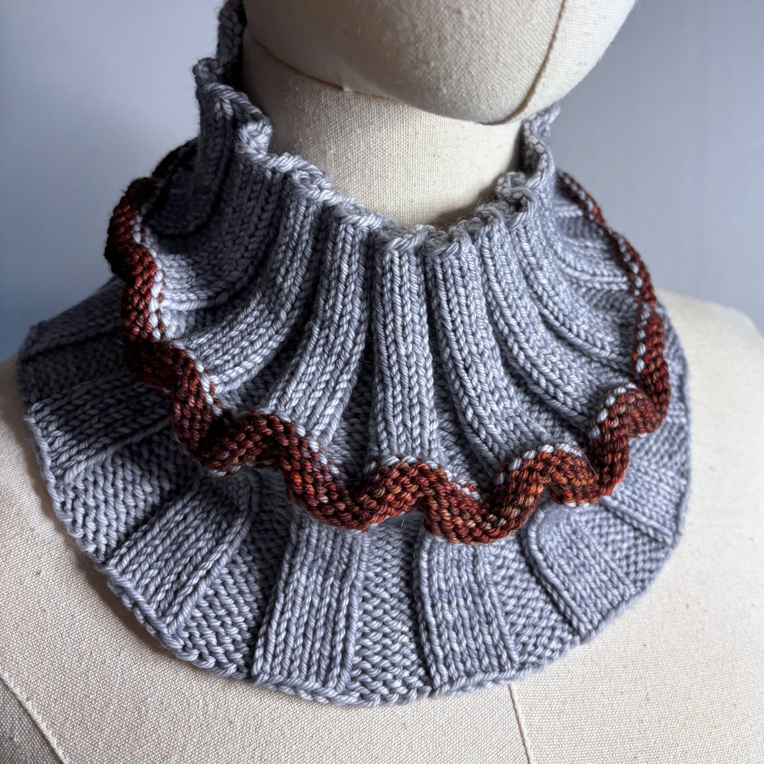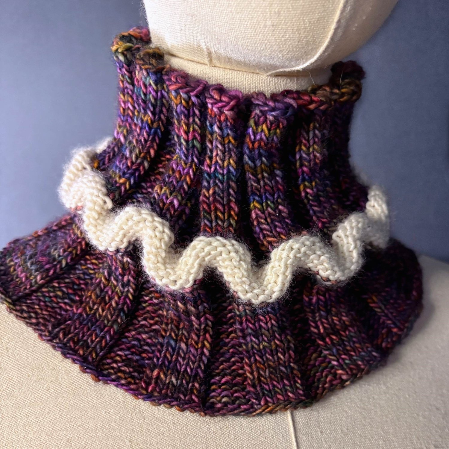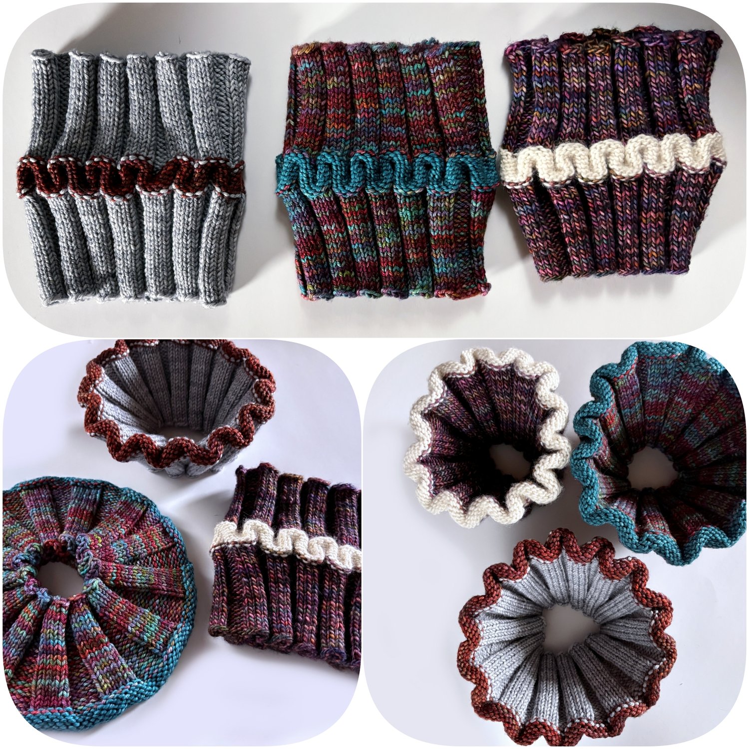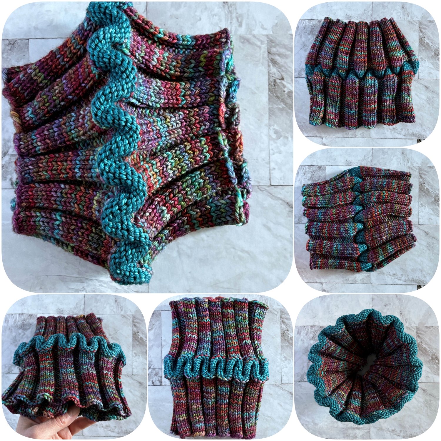 A wearable fidget/ sensory toy. Soothing to knit, soothing to wear. It's really fun to play with – Squishy, stretchy, wiggly, foldy, flip-able and reversible.