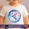 Create magical, kid-friendly designs with this Watercolor Celestial Elephant PNG Bundle — a dreamy set of 7 high-resolution clipart files featuring pastel galaxy backgrounds, watercolor texture, and adorable baby elephant characters.