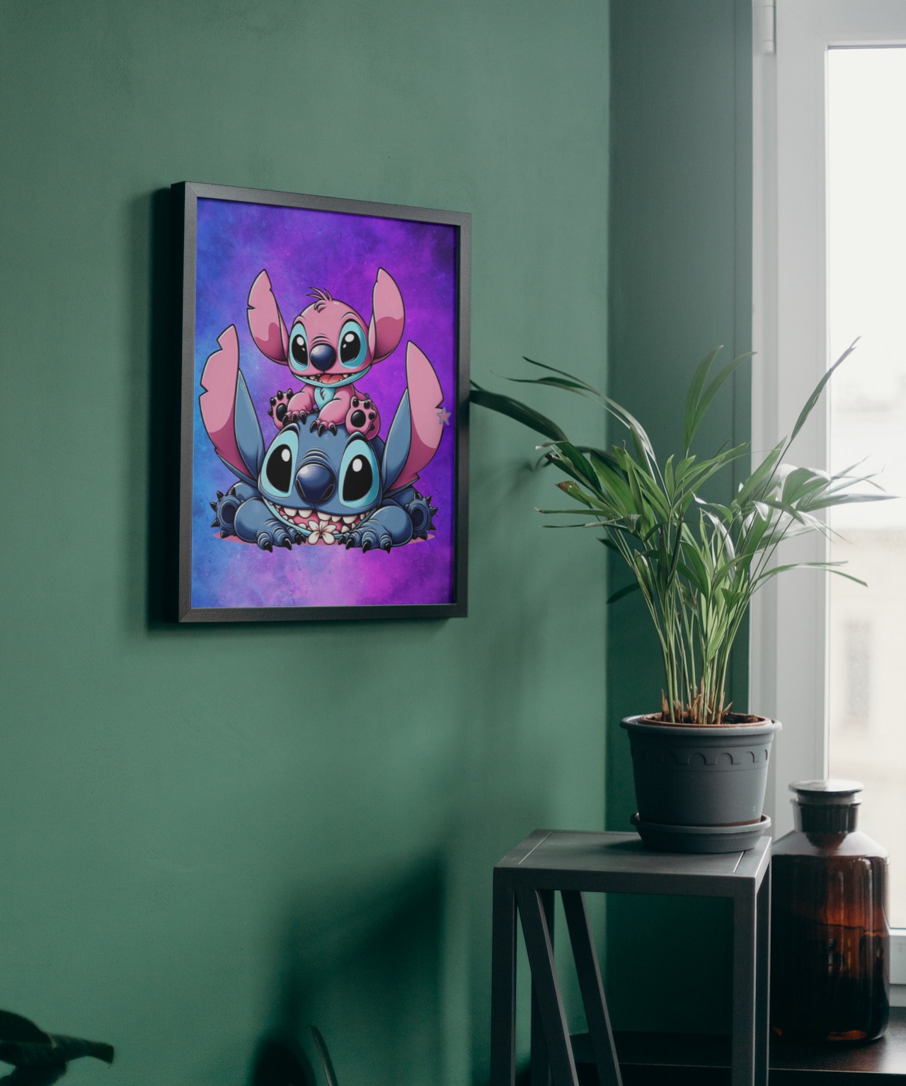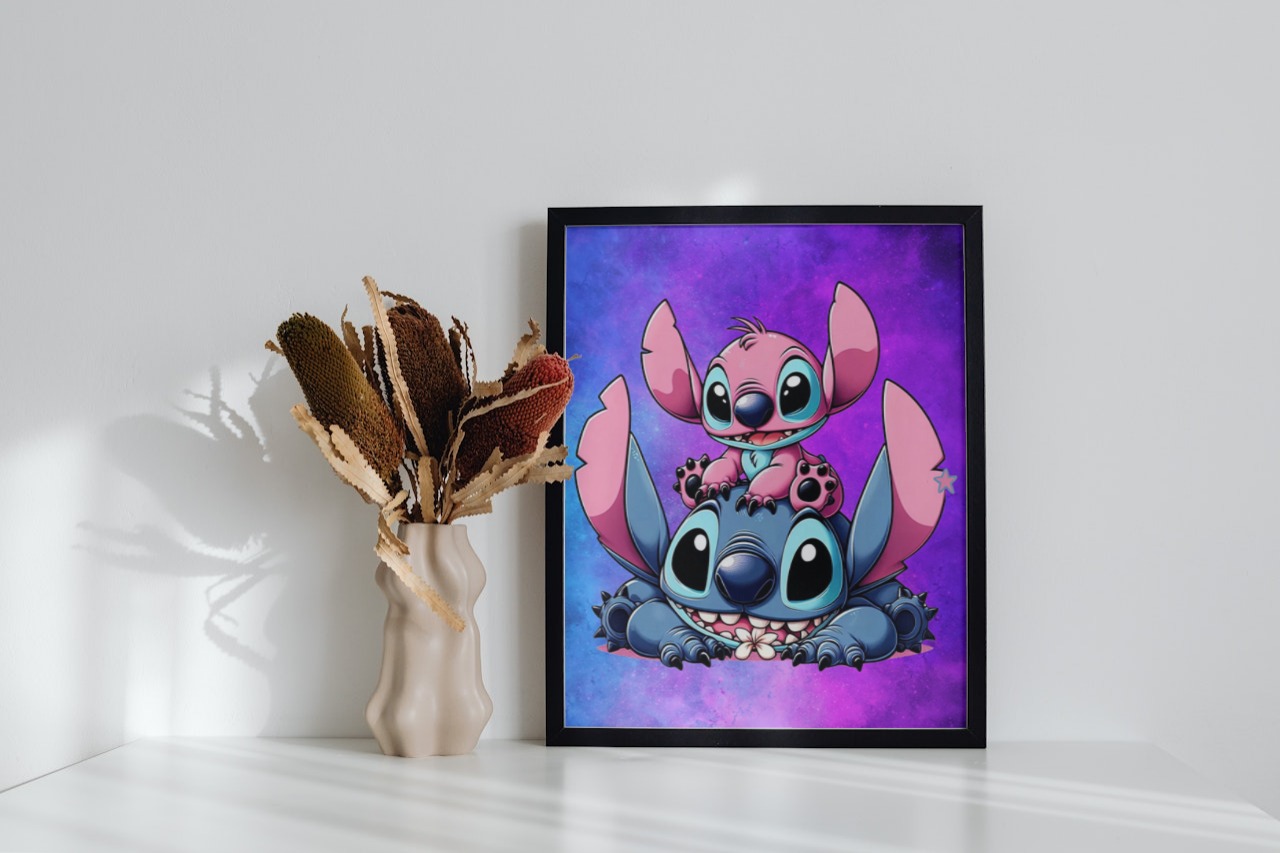 Stitch and Angel Print, lovely Nursery scene WALL ART, HOME DECOR, PRINT, GIFT, NEW