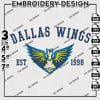 WNBA Dallas Wings Team Est Logo Embroidery Files, WNBA Dallas Team Embroidery Designs, Basketball Teams, 3 sizes, Machine embroidery designs, Digital Download