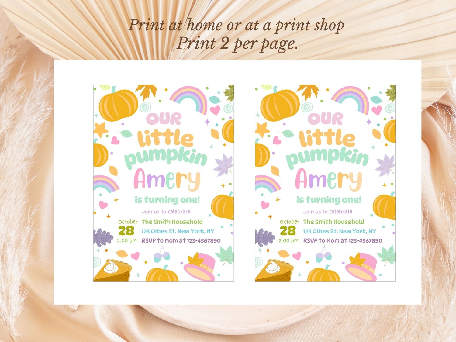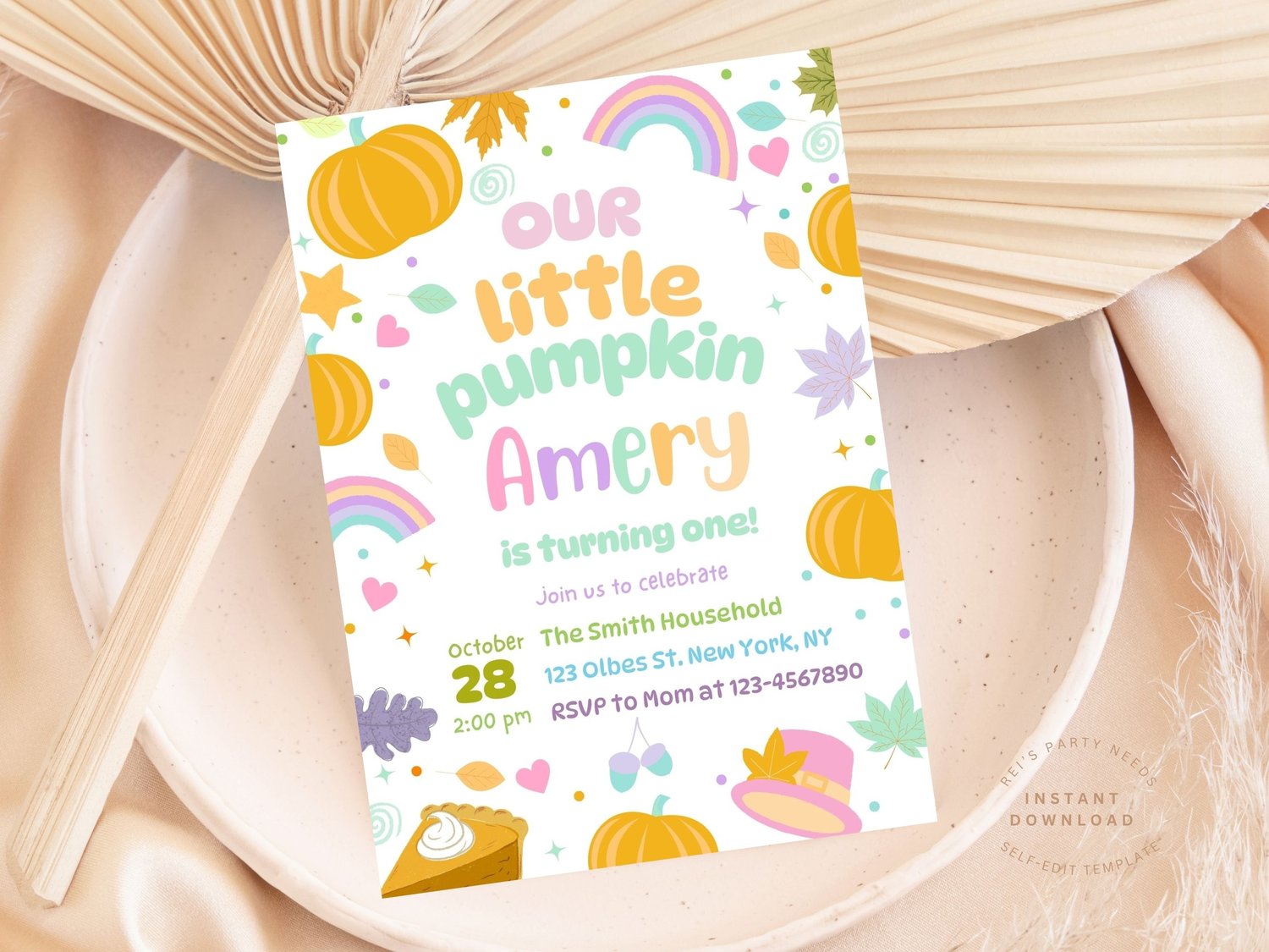Our Little Pumpkin Invitation Template, Cute Fall First Birthday Invite, Pastel Autumn 1st Birthday, Editable Canva Template, 5x7