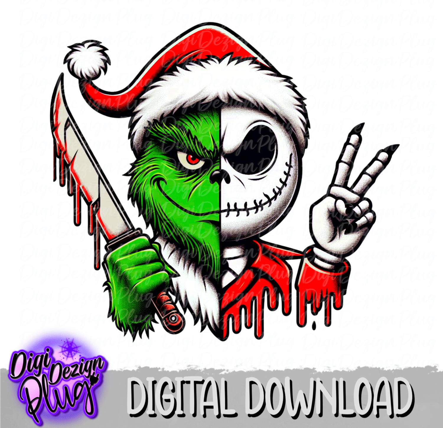 Grinch/Jack Skeleton Nightmare Before Christmas Png Digital Download, Great Christmas Sublimation, Christmas movie png
