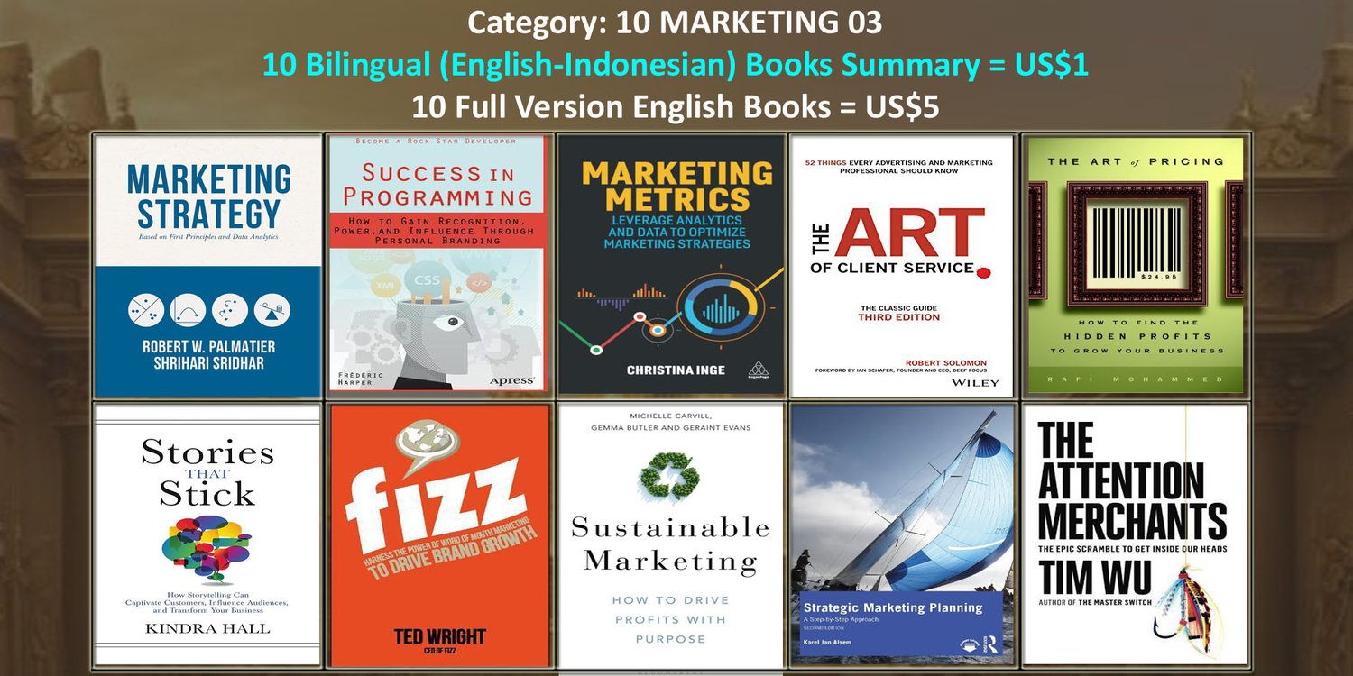 · Untuk 10 buku summary dalam 2 bahasa (English-Indonesian), hanya perlu 1 dollar saja, atau Rp.16.000,-