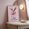 Pour Decisions Martini Art Print – Pink Retro Cocktail Illustration with Bow, Funny Bar Wall Decor