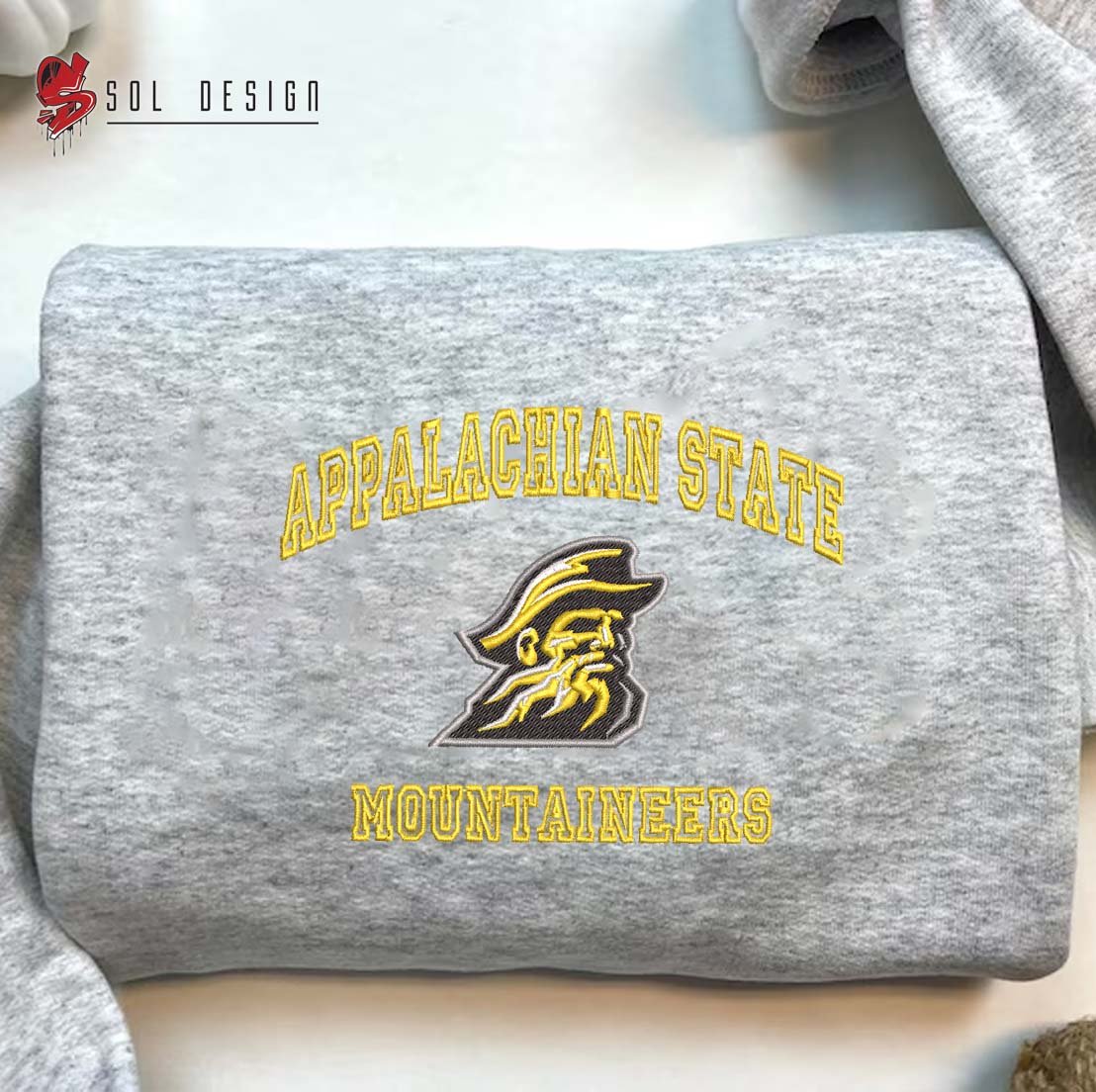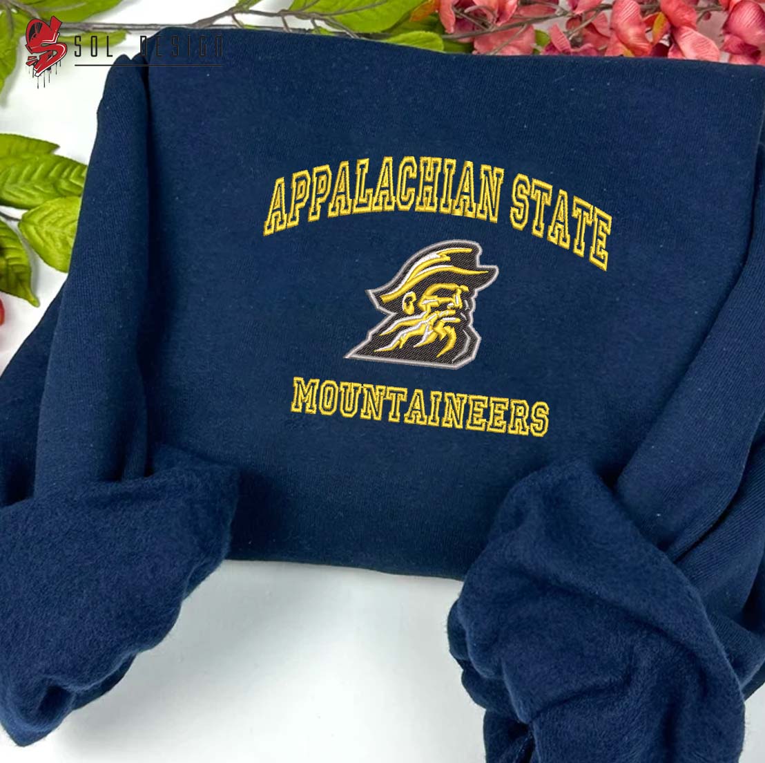 NCAA Appalachian State Mountaineers College Football Team Embroidered Crewneck, Appalachian State Football Embroidered Sweatshirt, NCAA UNC Appalachian State Mountaineers Team Sweatshirt, Game Day Embroidered Hoodie, T-shirt