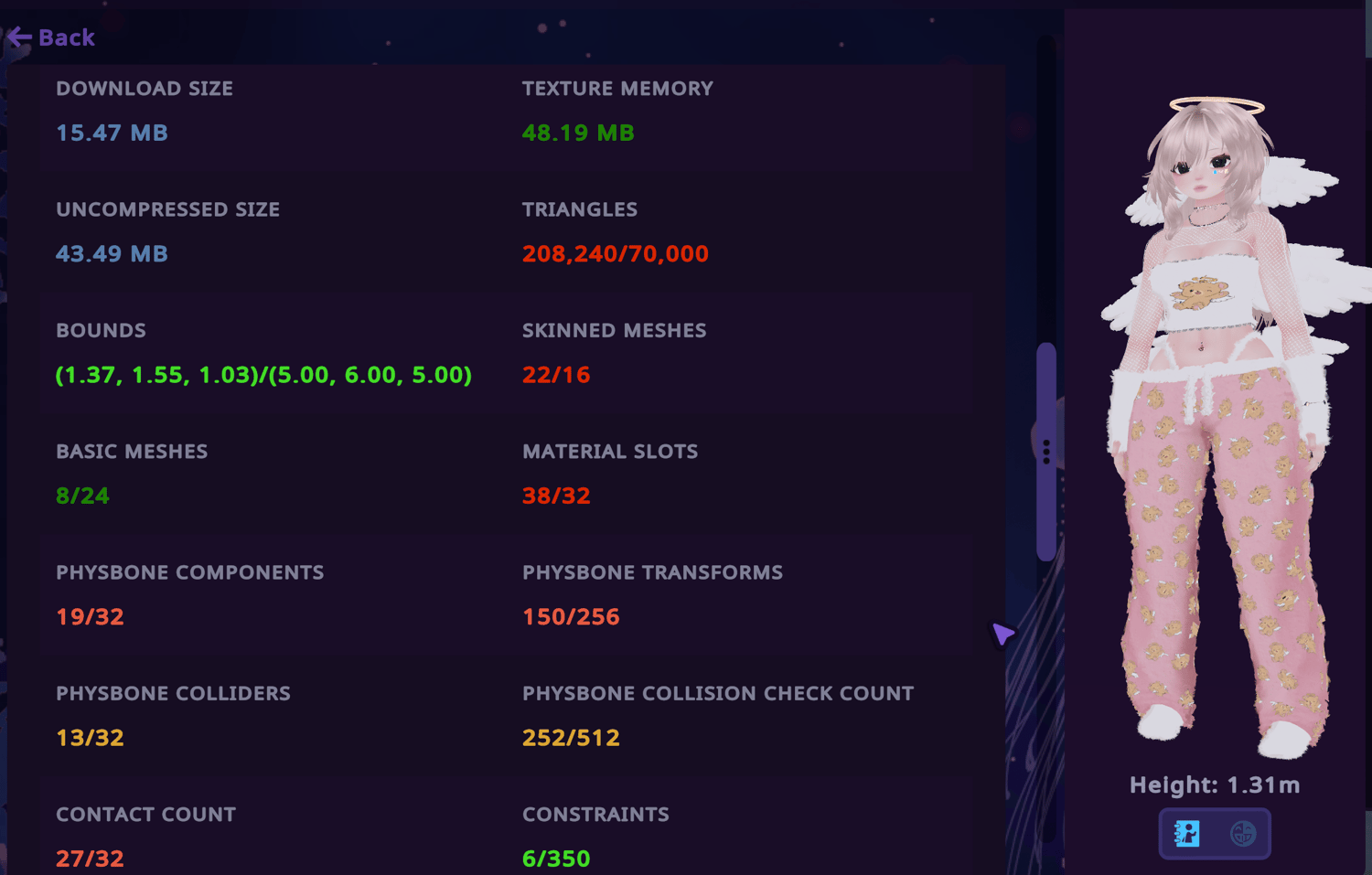 -There are physbones in the hair, chest, wing, halo, and more on all platform. Pc has some extra, like arm twist.