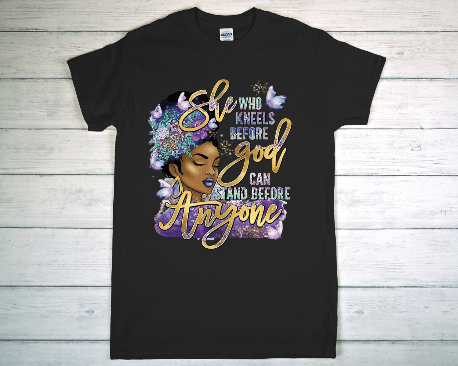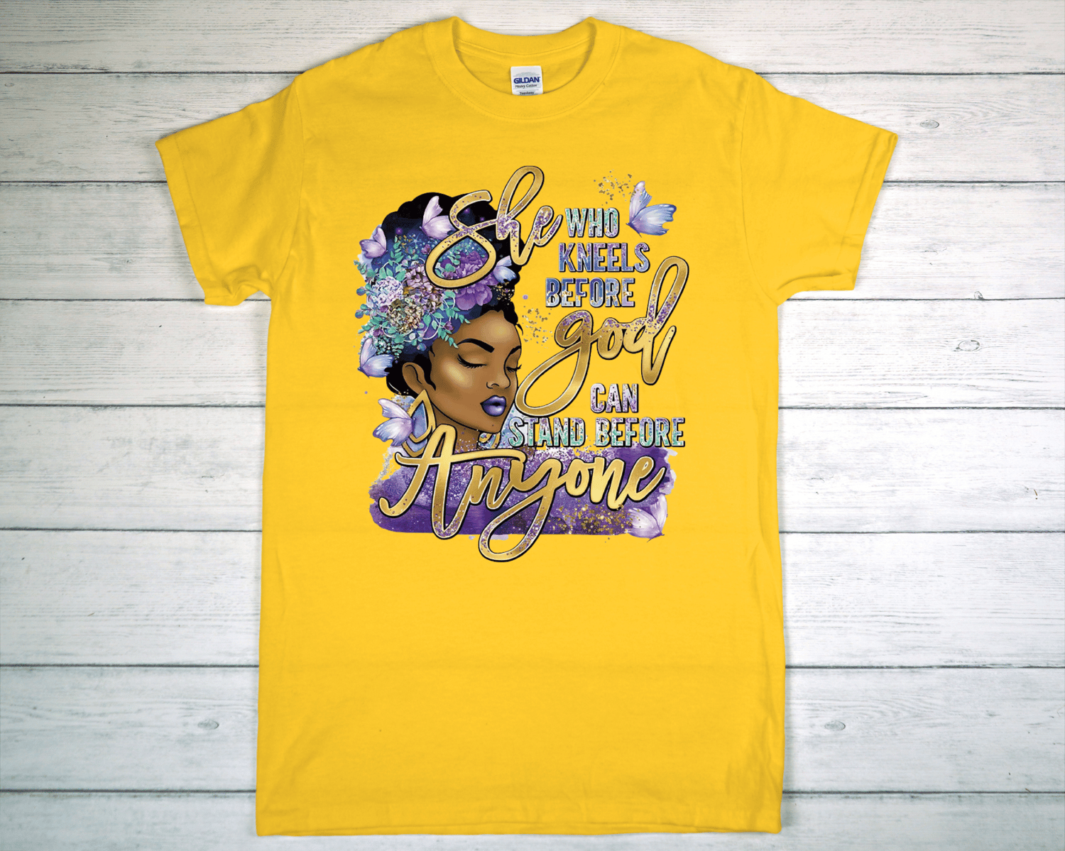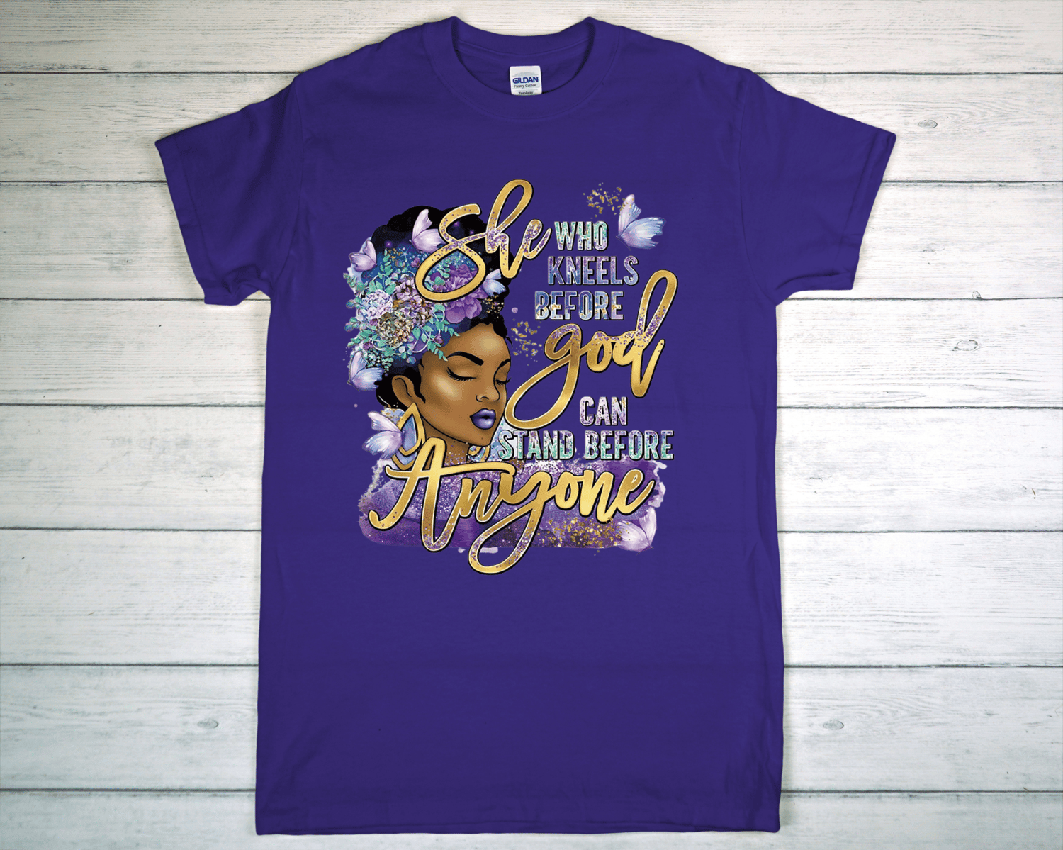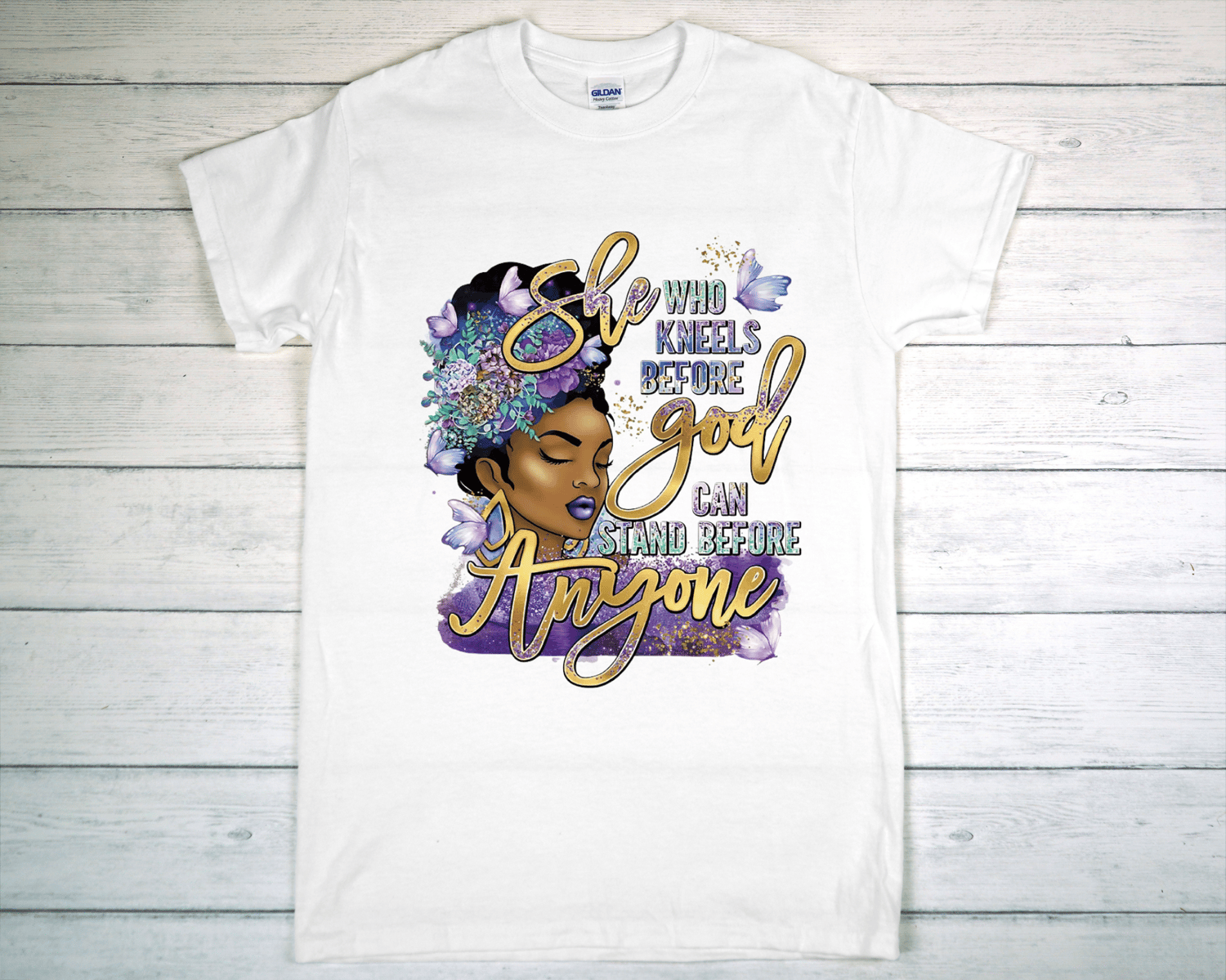 “She Who Kneels Before God” Inspirational Graphic T-Shirt – Gildan Brand (S–5XL)